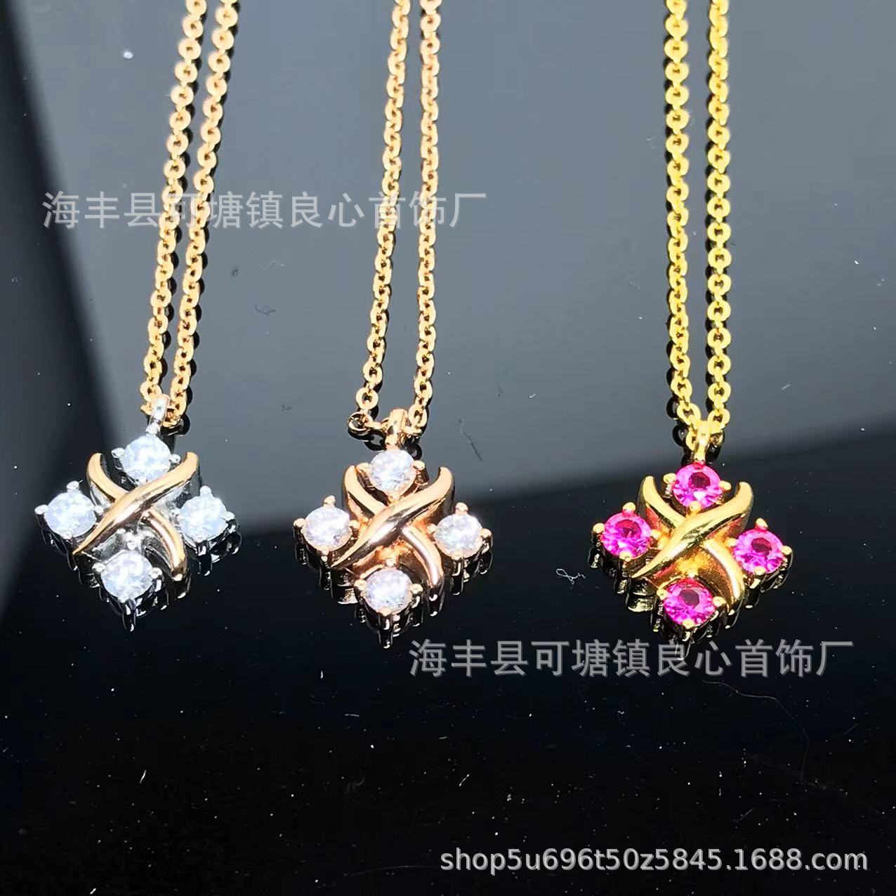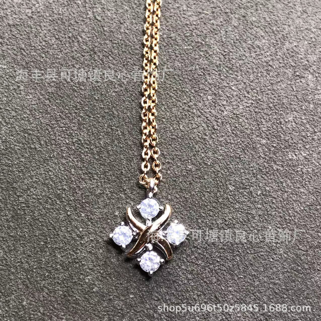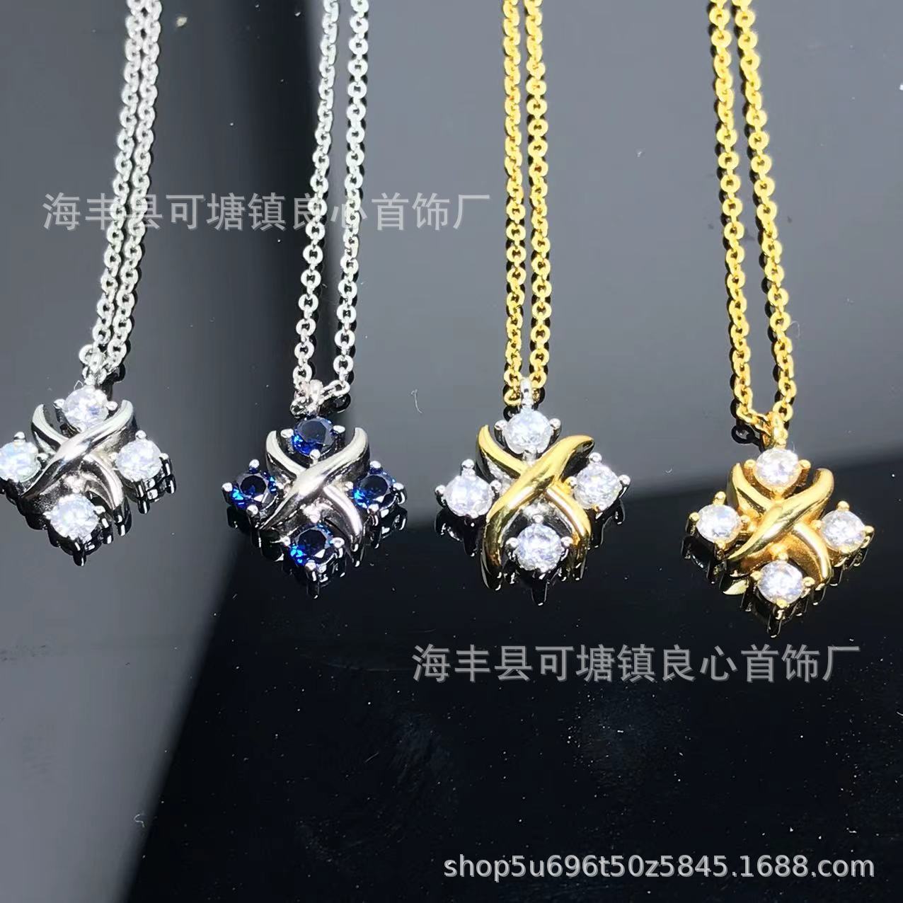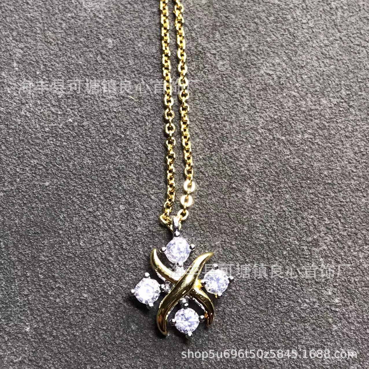 New V gold cross Diamond X-shaped four diamond diamond necklace women's fashion clear simple all-match trendy light luxury style