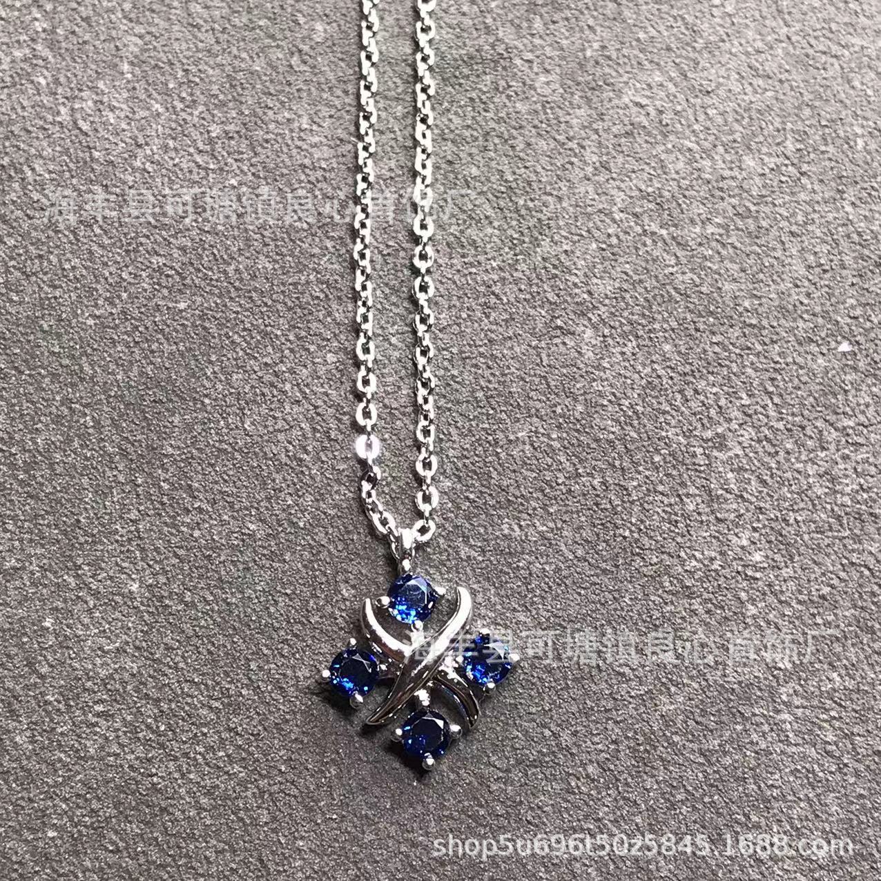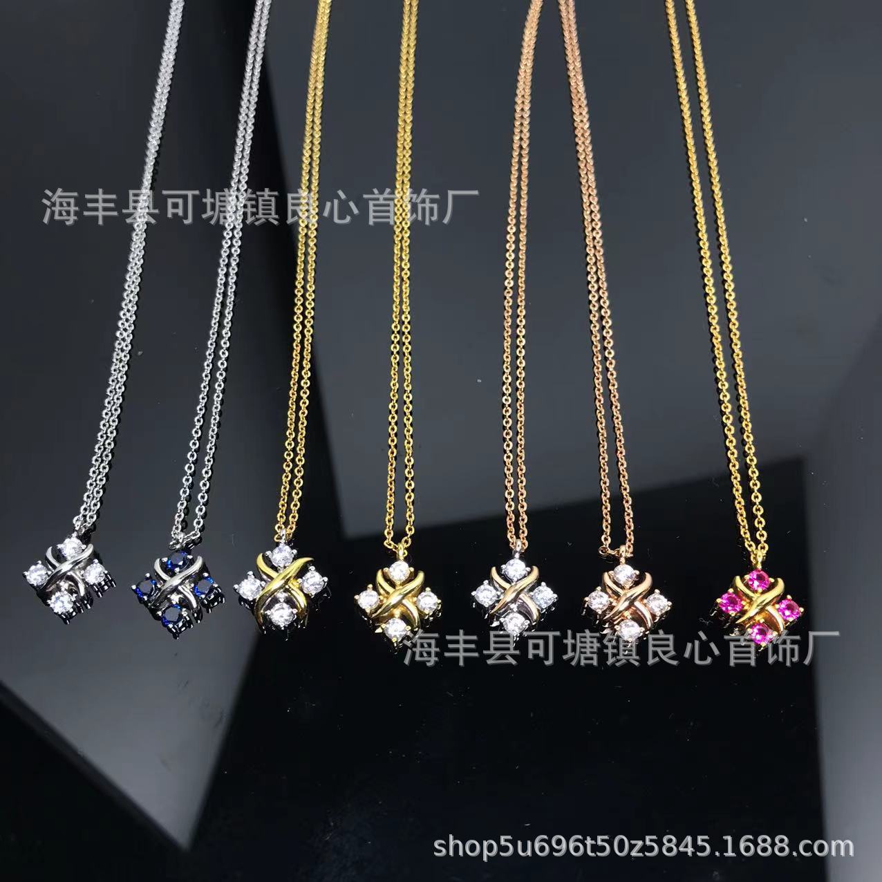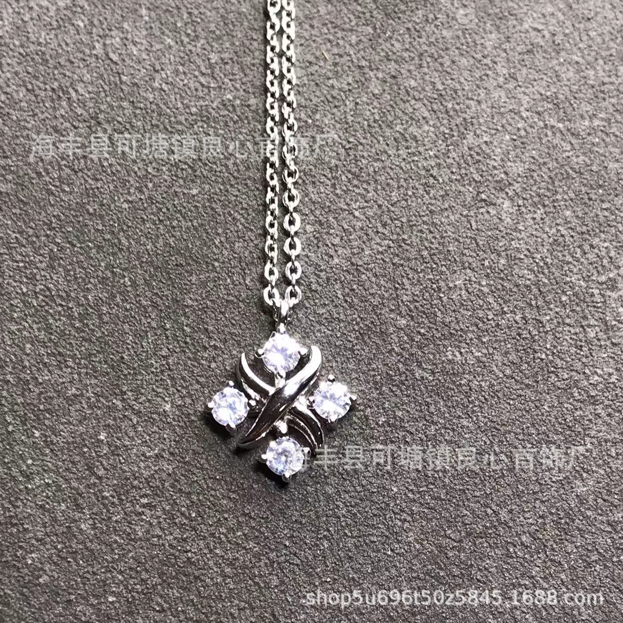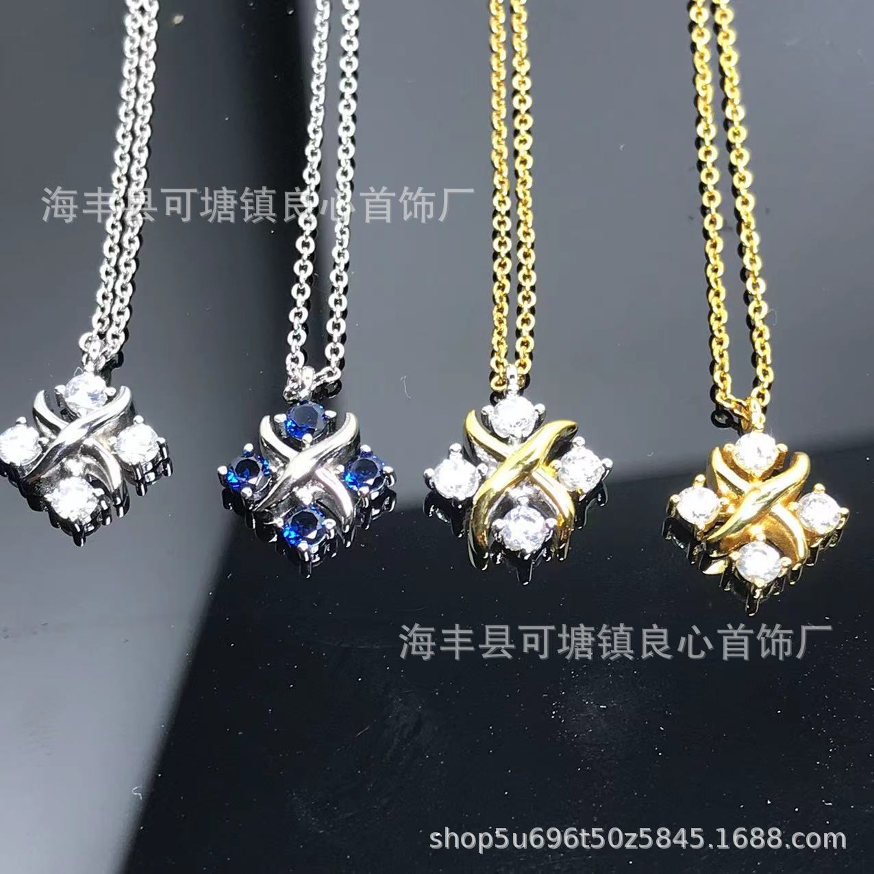 New V gold cross Diamond X-shaped four diamond diamond necklace women's fashion clear simple all-match trendy light luxury style