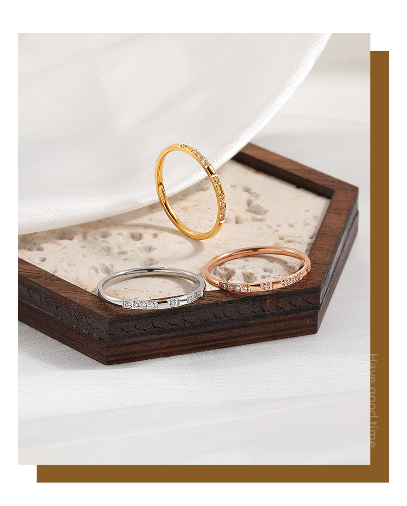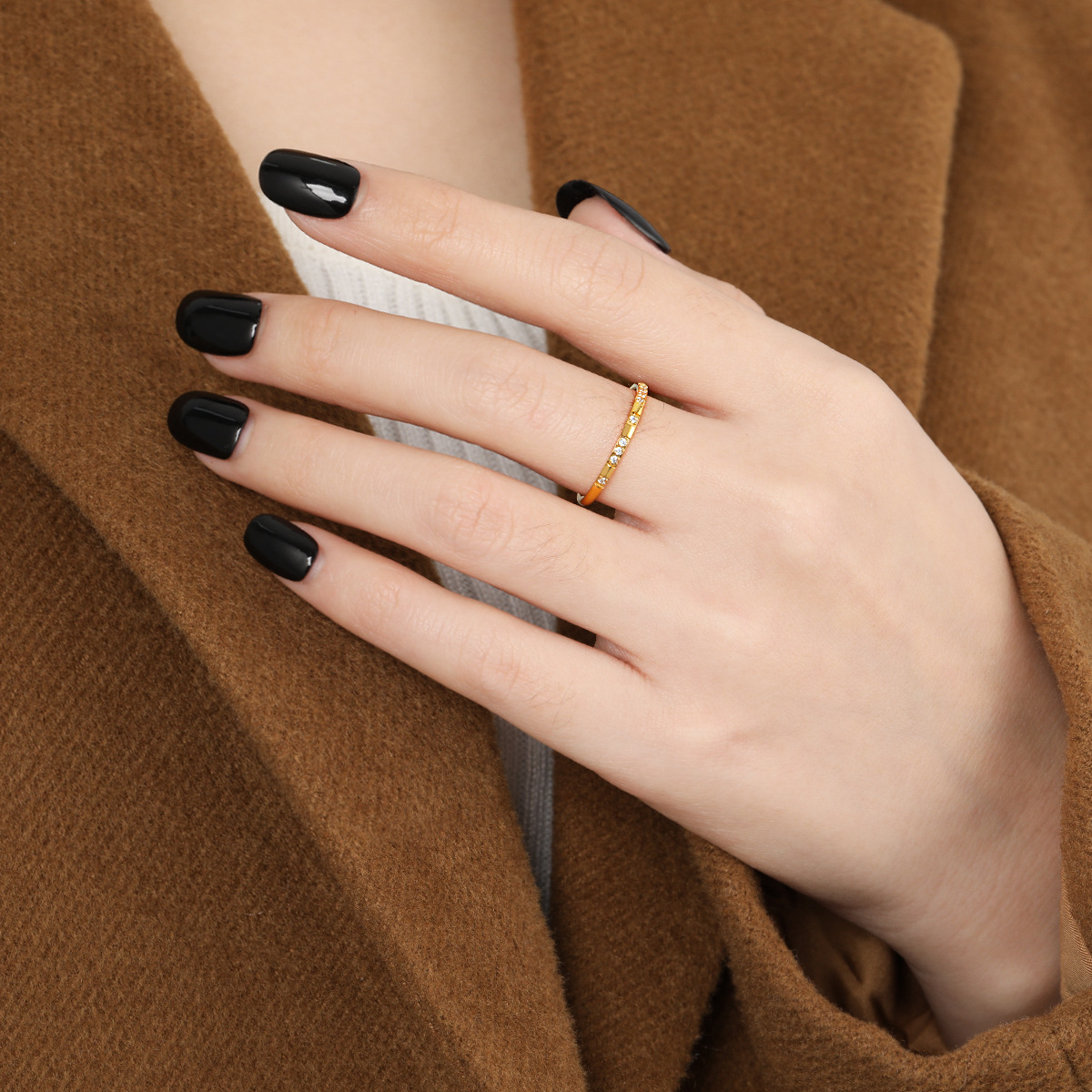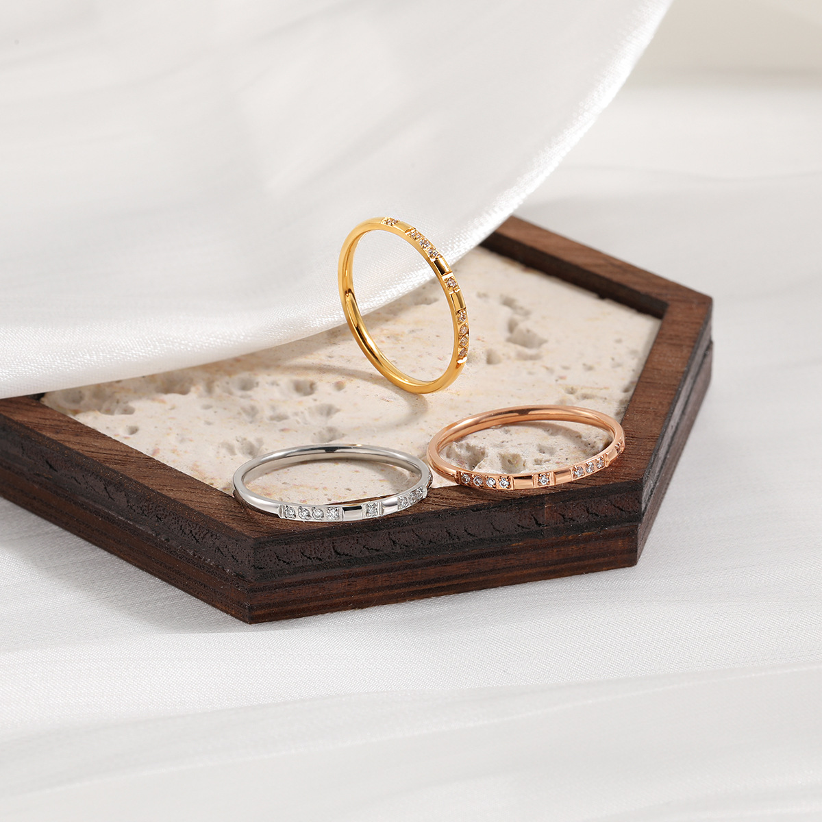 Korean Fashion Simple Lifetime Nine Stone Spacer Diamond Ring Female Personalized Gold-Plated Titanium Steel Index Finger Ring
