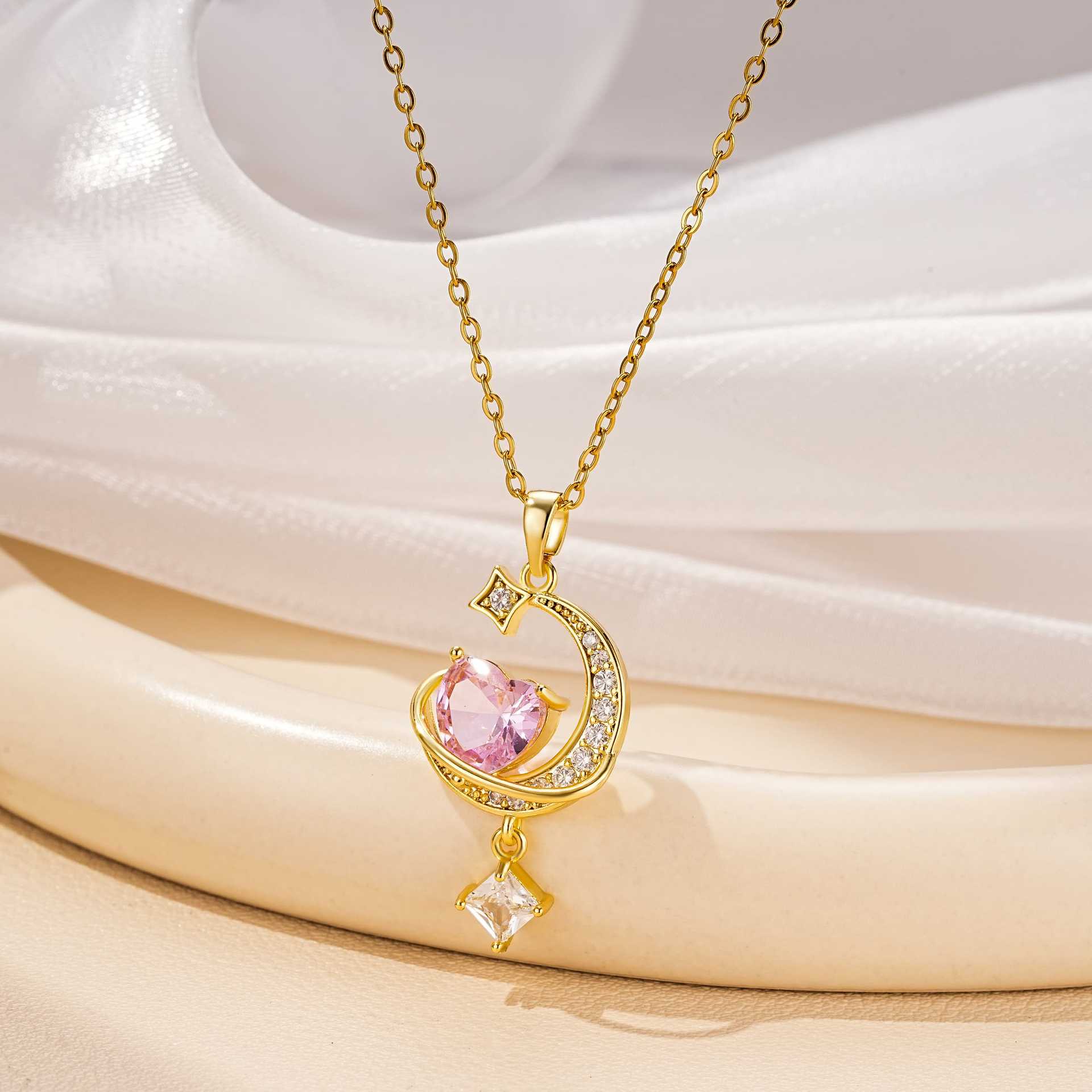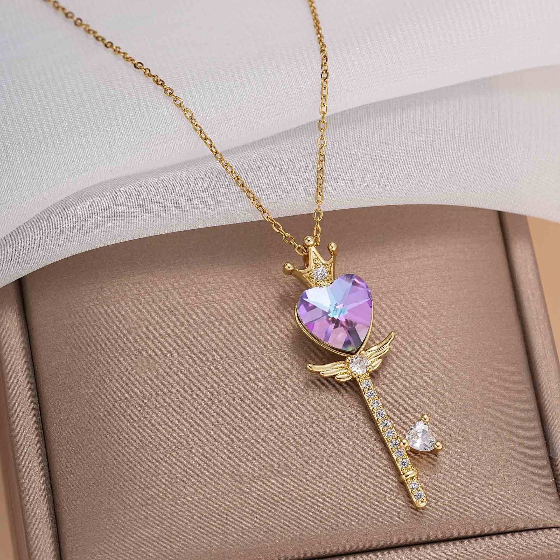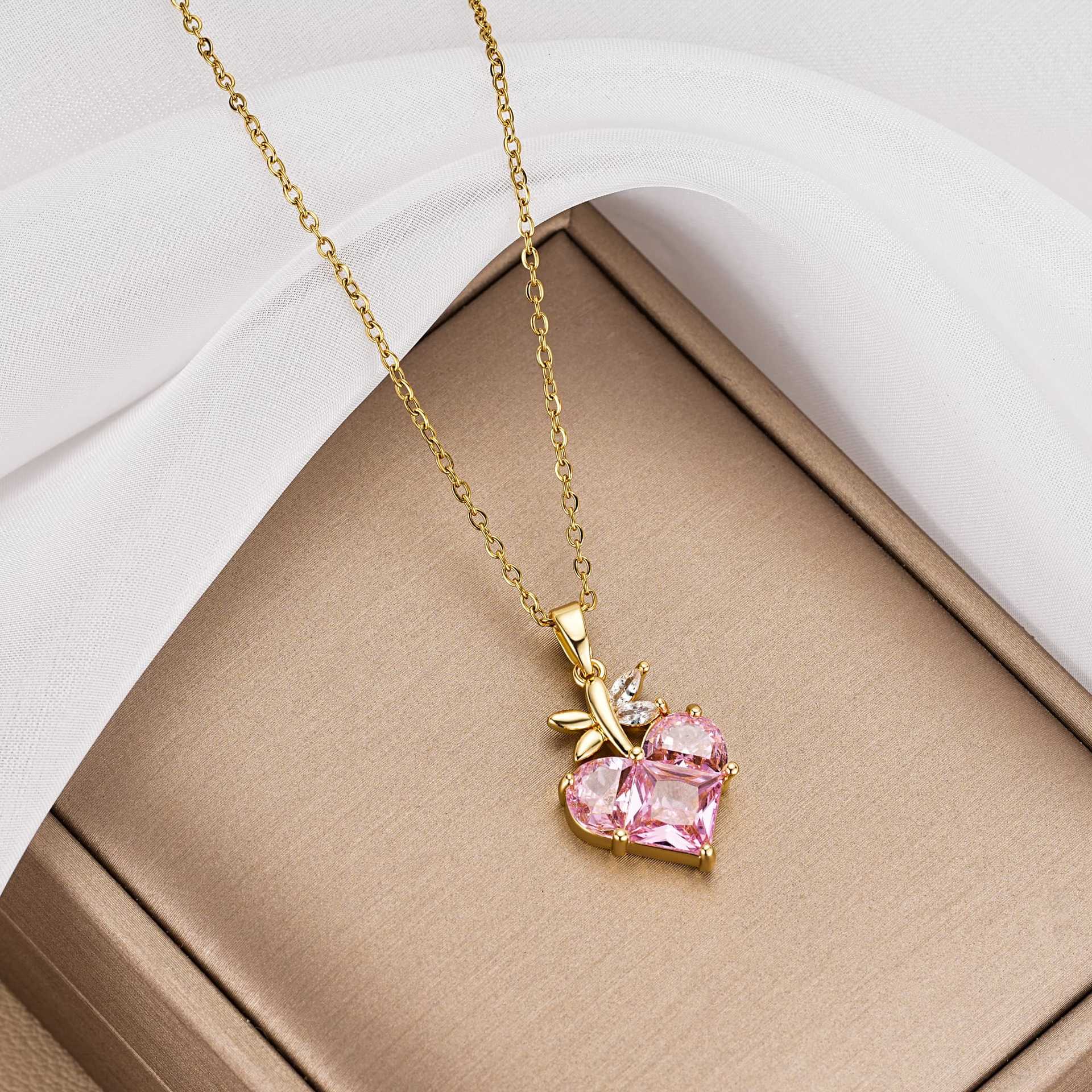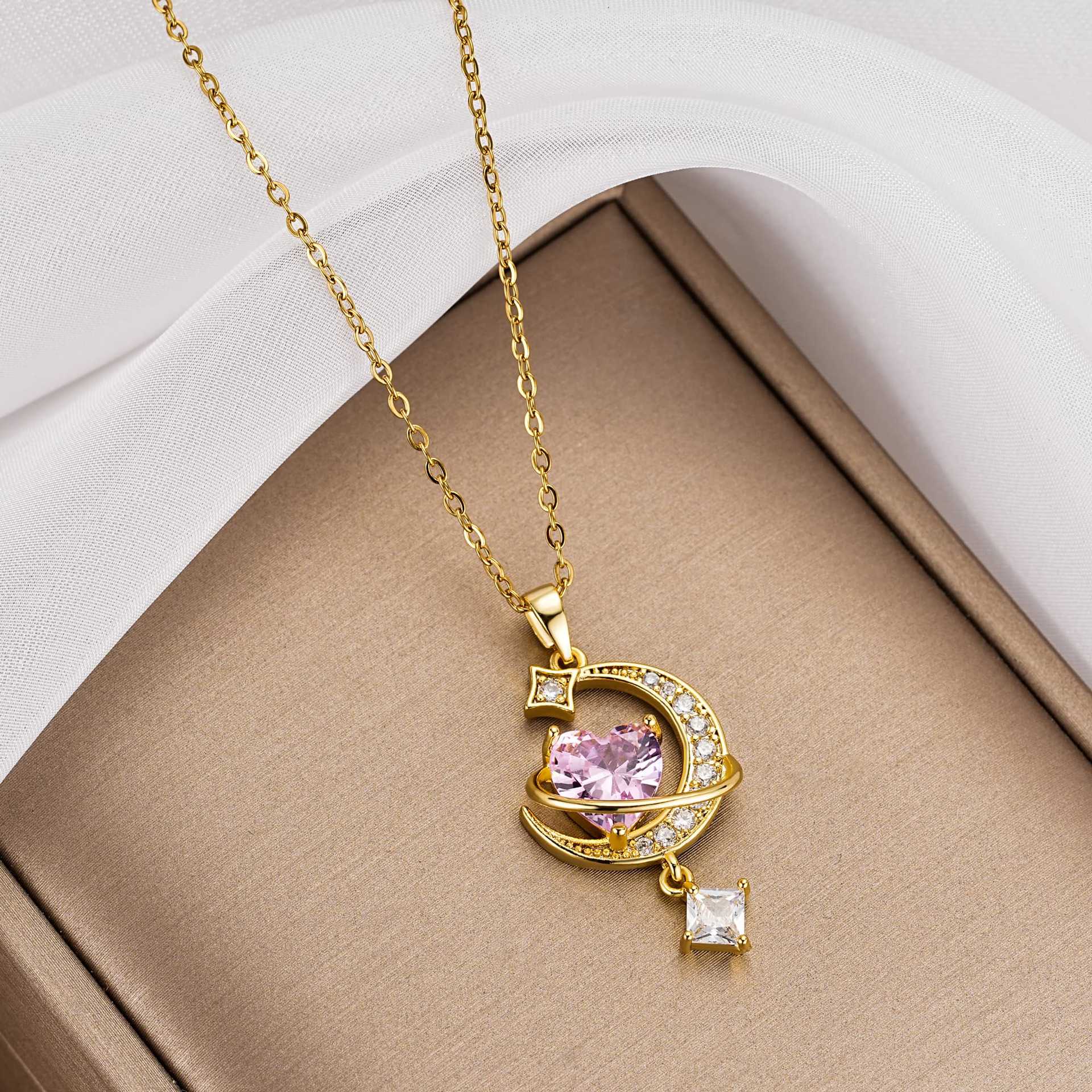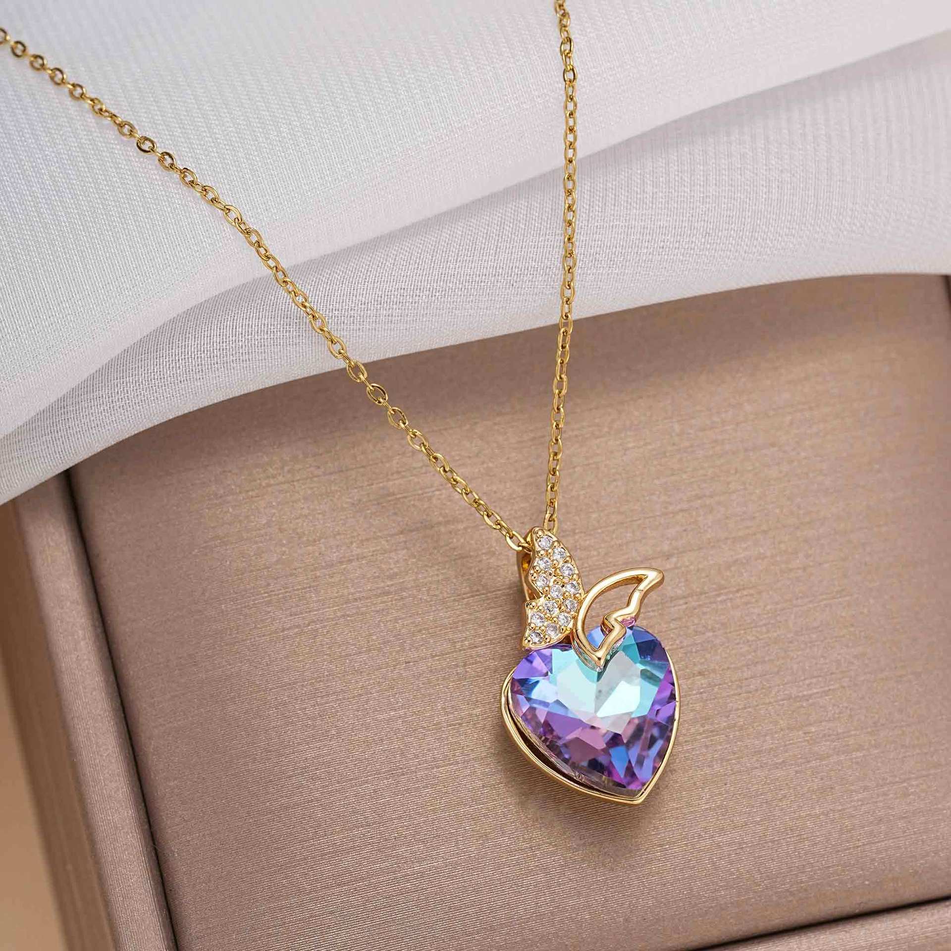 Love Necklace Women's All-match High-end Sense Zircon Crystal Bow Ins Clavicle Chain Titanium Steel Color-free Jewelry