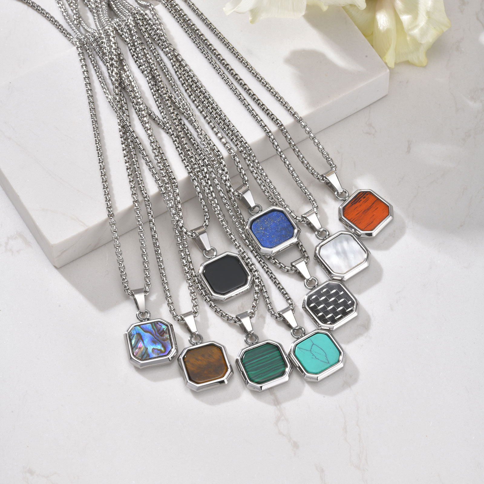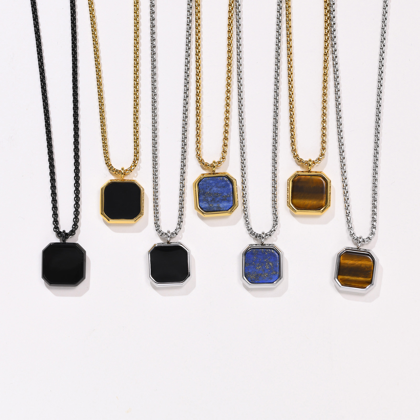 Color: Lapis lazuli steel color pendant + chain 60cm