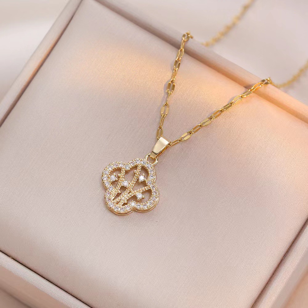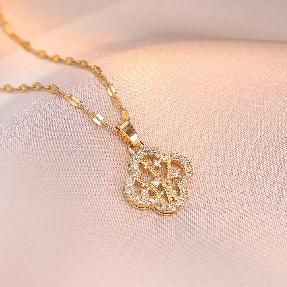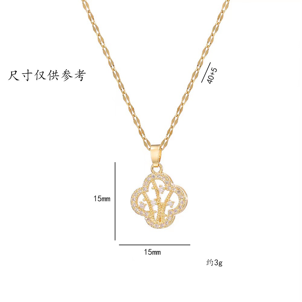 Necklace for Women, Trendy Cross-Border Clear Four-Leaf Flower Necklace Full of Diamonds, Lucky Ins Influencer Collarbone Chain Accessory