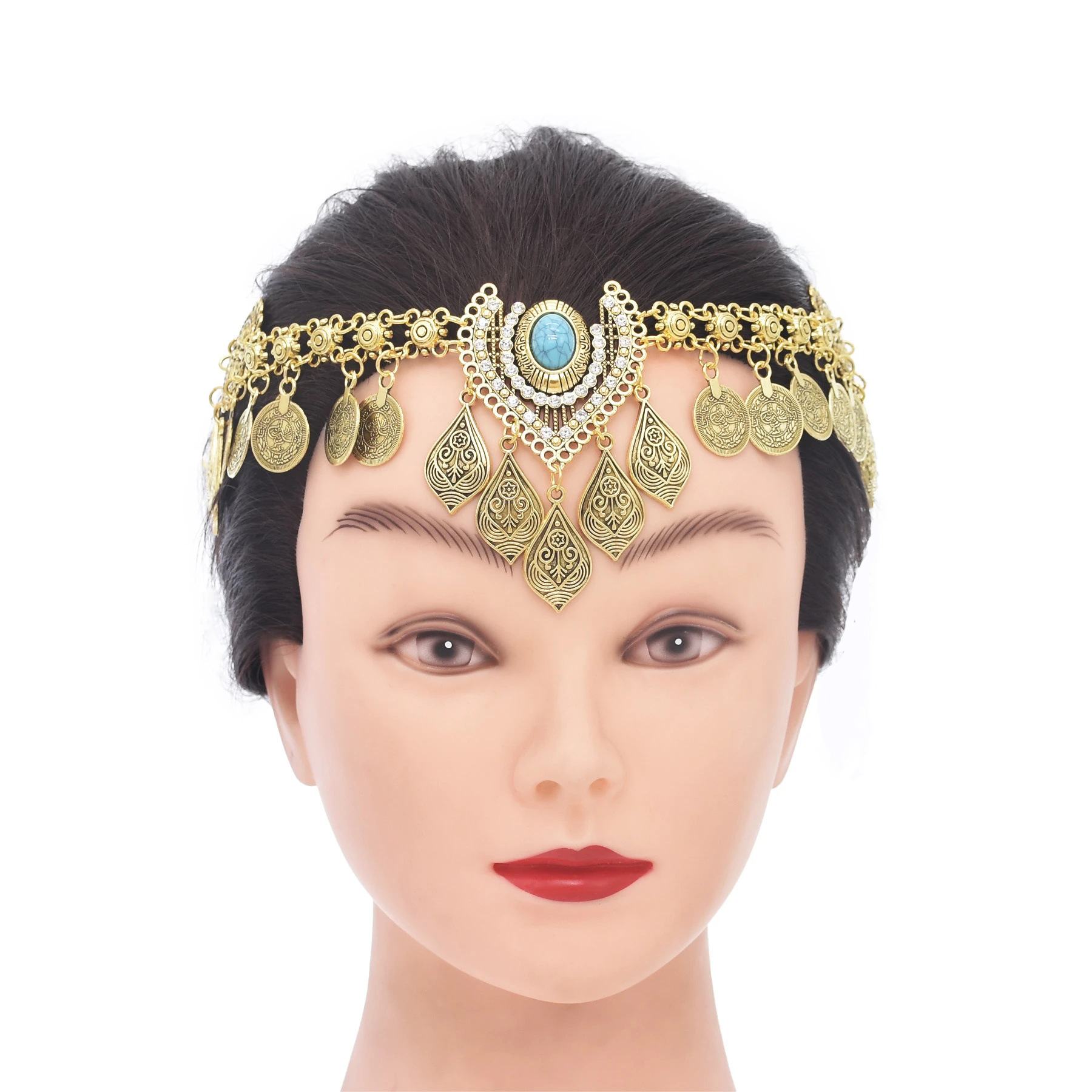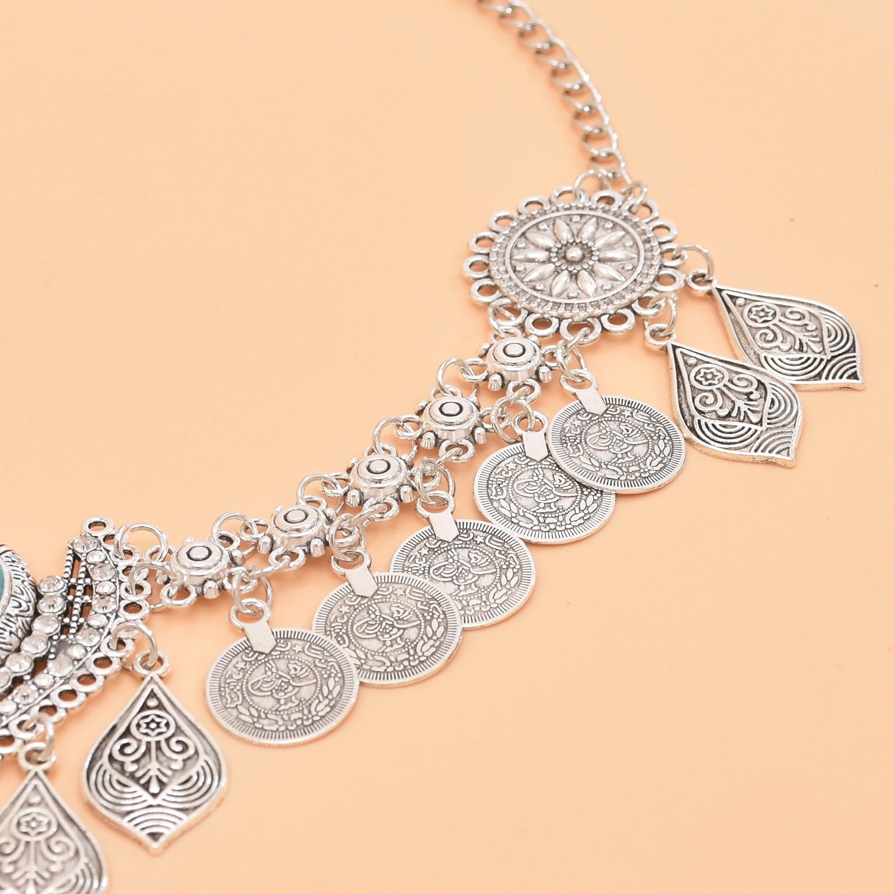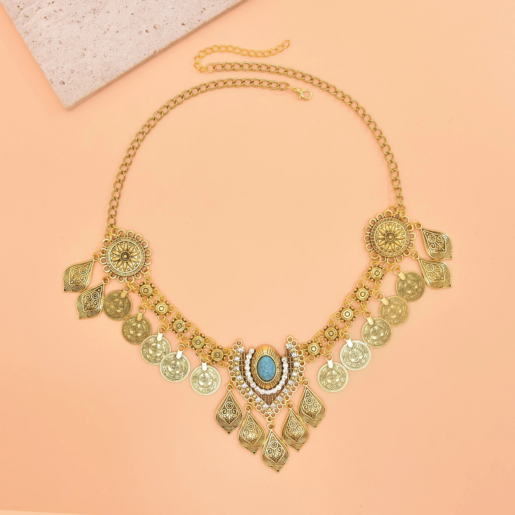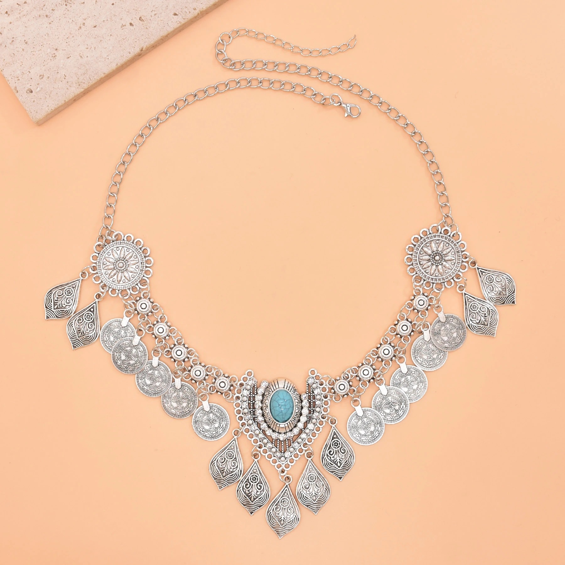 【名称】:哈萨克民族钱币项链复古镶嵌水钻仿松石毛衣链头饰两用