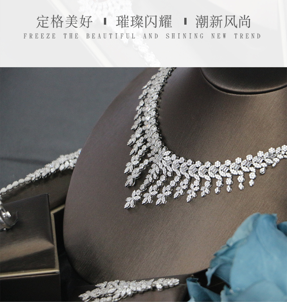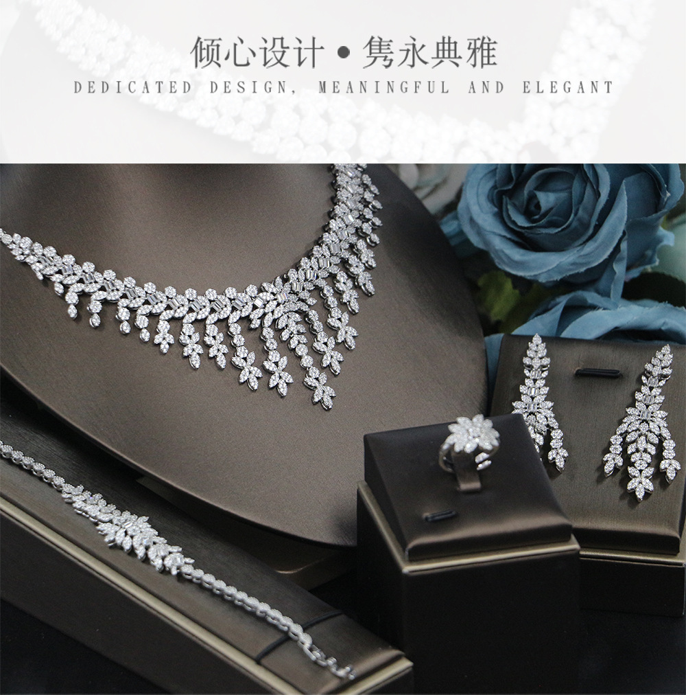 Middle East Dubai bridal jewelry suit full diamond zircon wedding banquet dress accessories necklace earrings four-piece set 3A jewelry