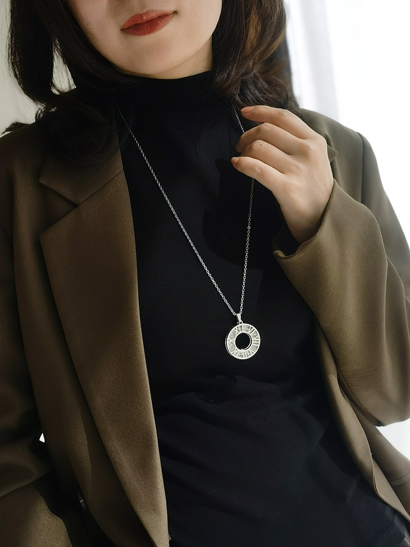 Silver disc pendant sweater chain 2022 new trendy long autumn and winter fashion necklace design sense niche accessories
