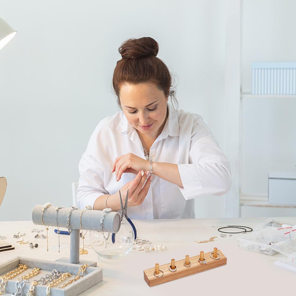 Custom Jewelry Organizer Tray Store Storage Selling Jewelry Display Wood Finger Ring Cylinder Ring Display Stand