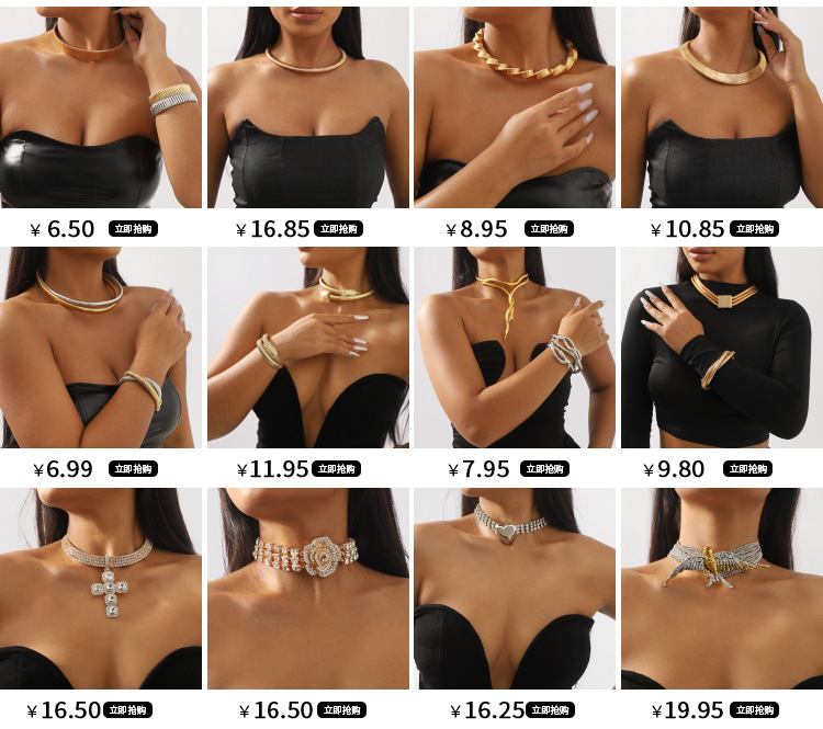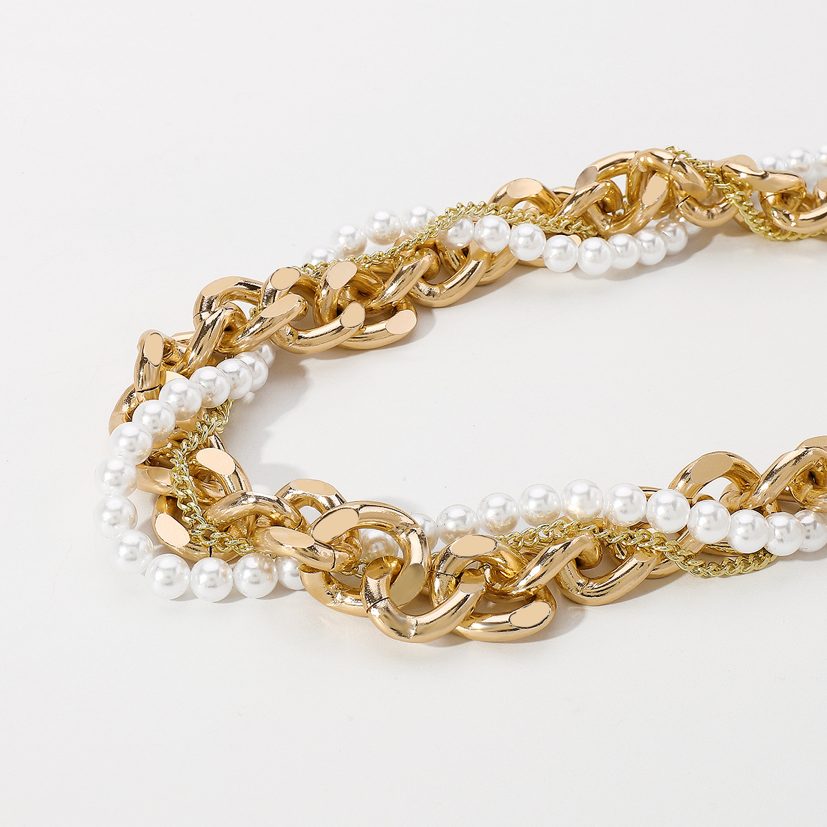 N11771 cross-border European and American-style metal Pearl stacked necklace Women's Light luxury high-grade vintage mid-ancient necklace