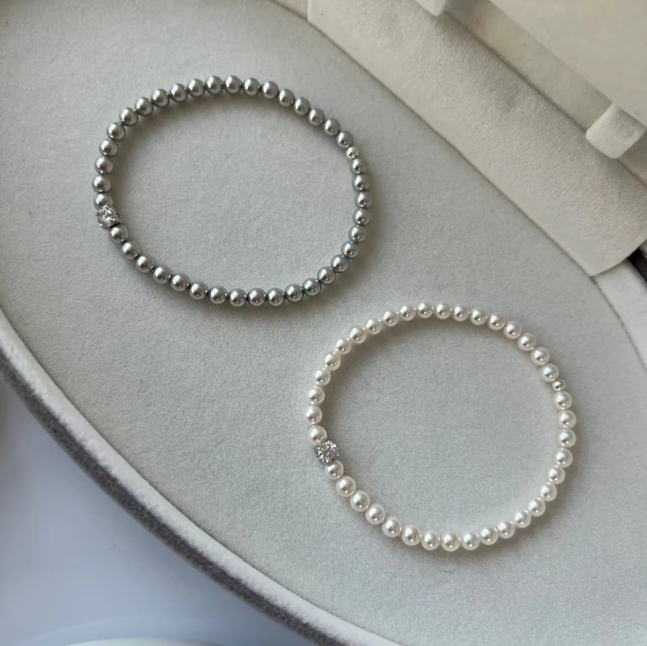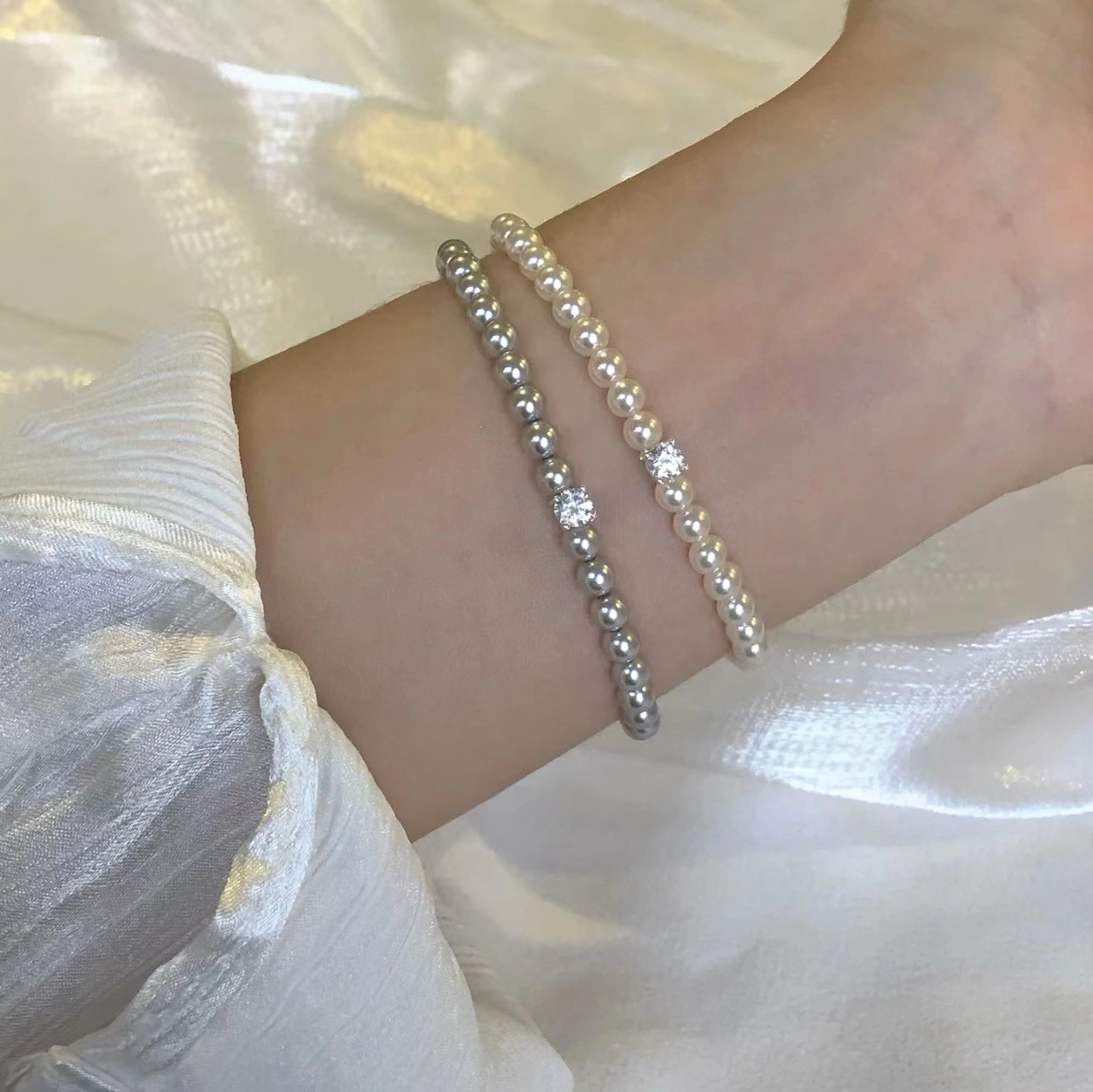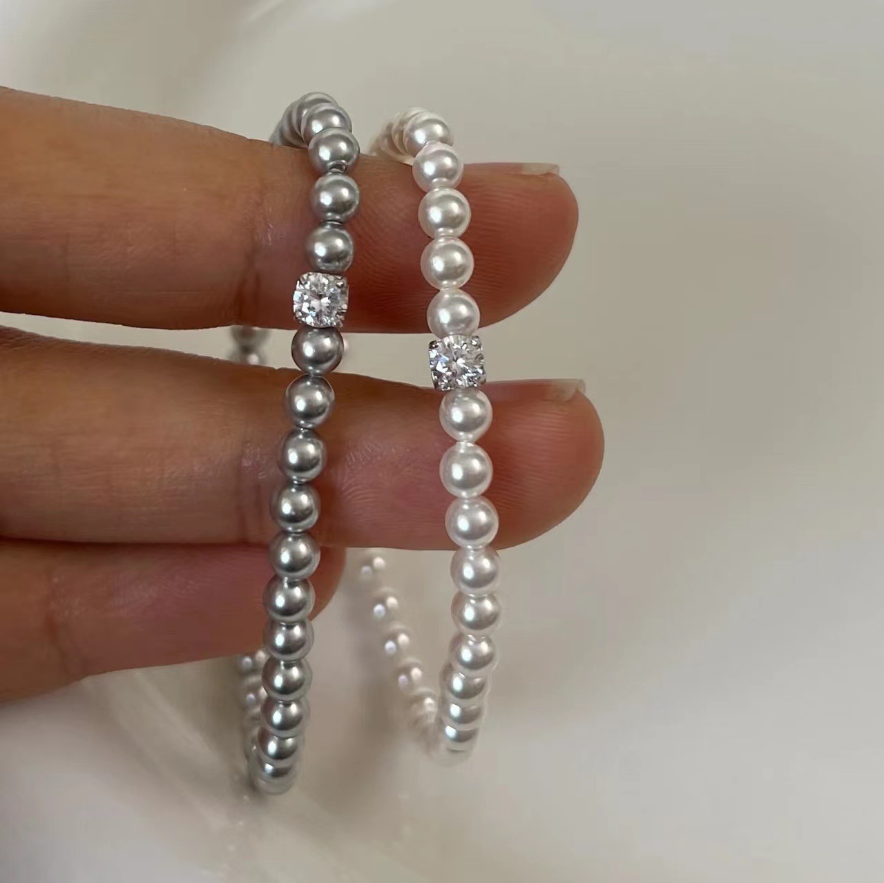 S925 sterling silver Austrian Shijia Zhengyuan Shijia Crystal Pearl cube sugar bracelet zircon light luxury high-grade sense niche