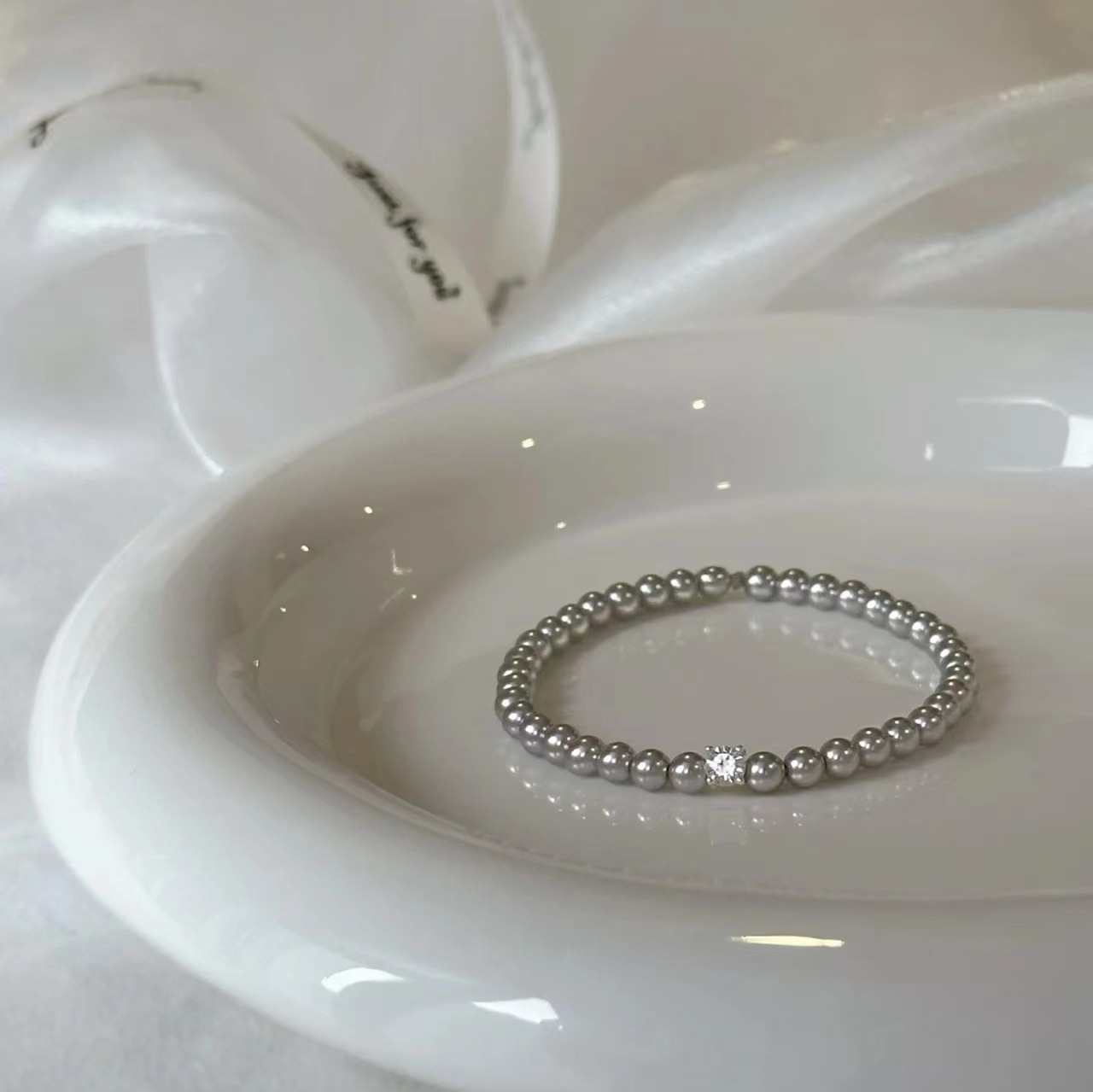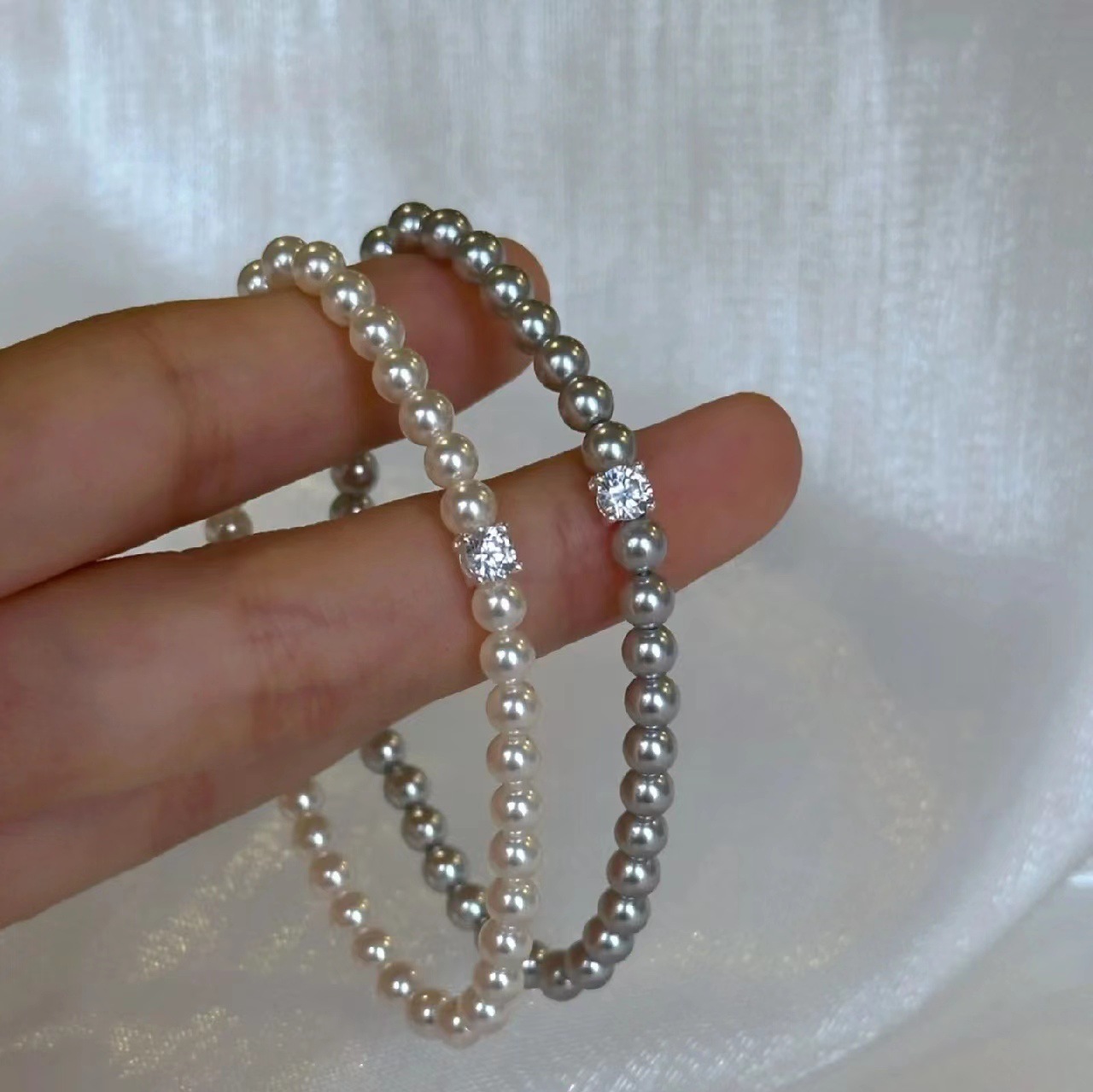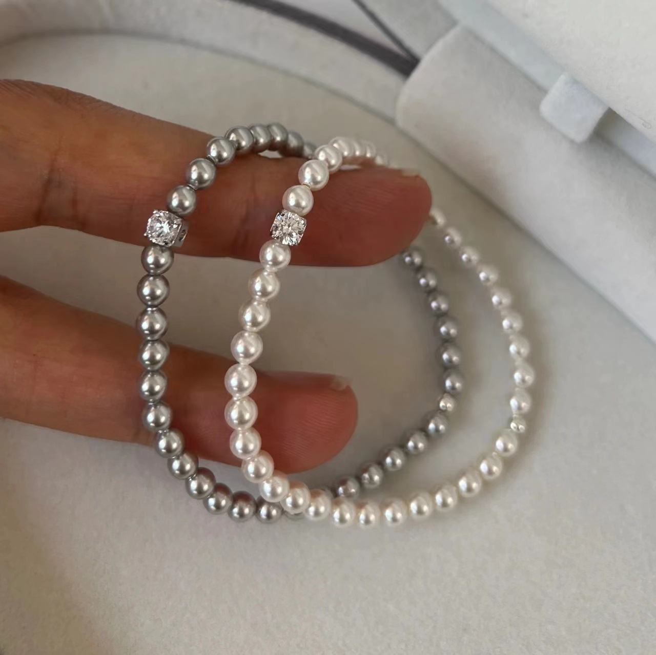 S925 sterling silver Austrian Shijia Zhengyuan Shijia Crystal Pearl cube sugar bracelet zircon light luxury high-grade sense niche