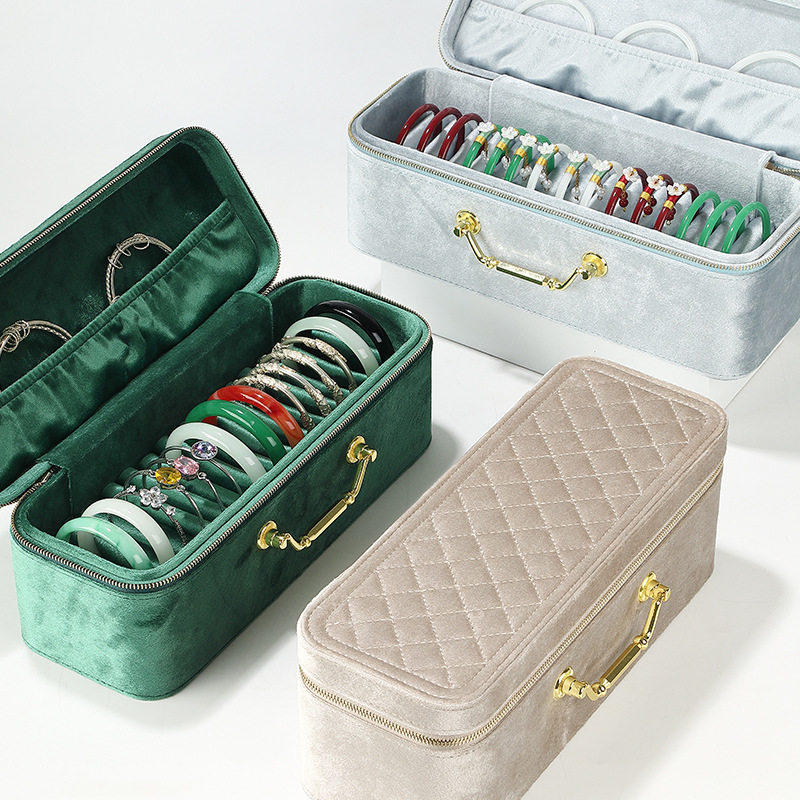 New light luxury velvet jewelry box special jade bracelet storage box Jade vintage bracelet packing box gold bracelet box