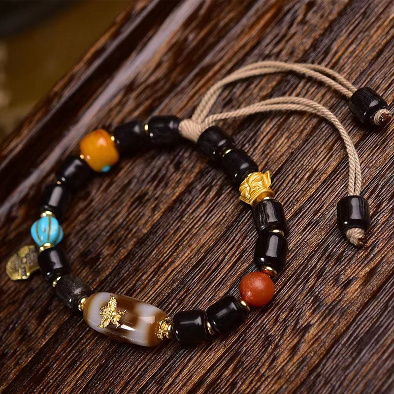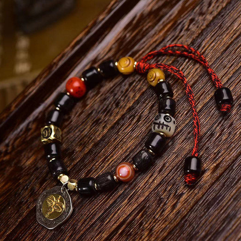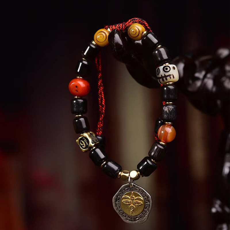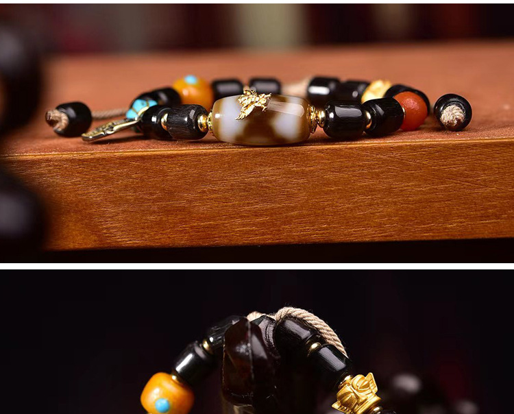 Xizang area Yangjiao Wenwan bracelet single circle Hoh Xili barrel beads clear lines Xizang style men's and women's vintage bracelet