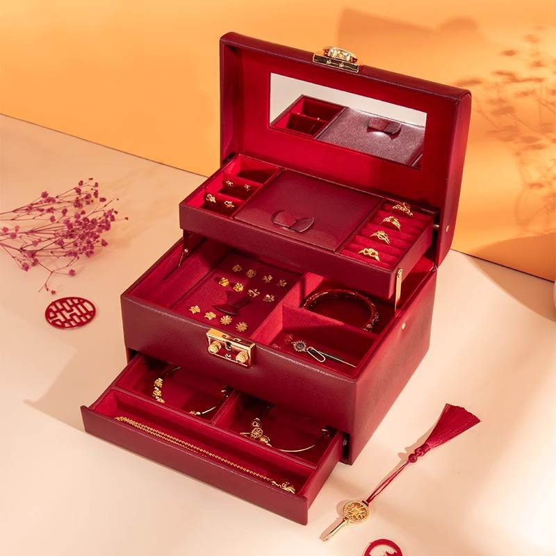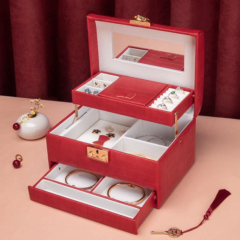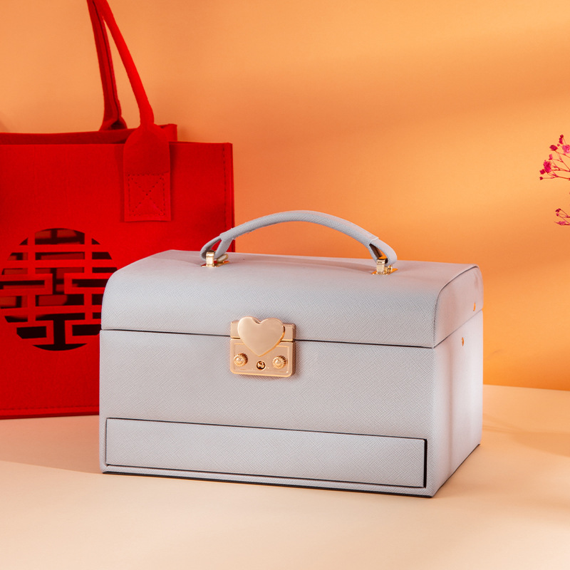 2025 New Jewelry Box Small Lockable Portable Wedding High-End Jewelry Storage Box Bracelet Necklace Jewelry Box