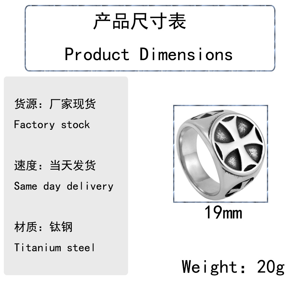 Source factory direct selling Europe and the United States hot retro style men's cross titanium steel ring tide men's stainless steel ring