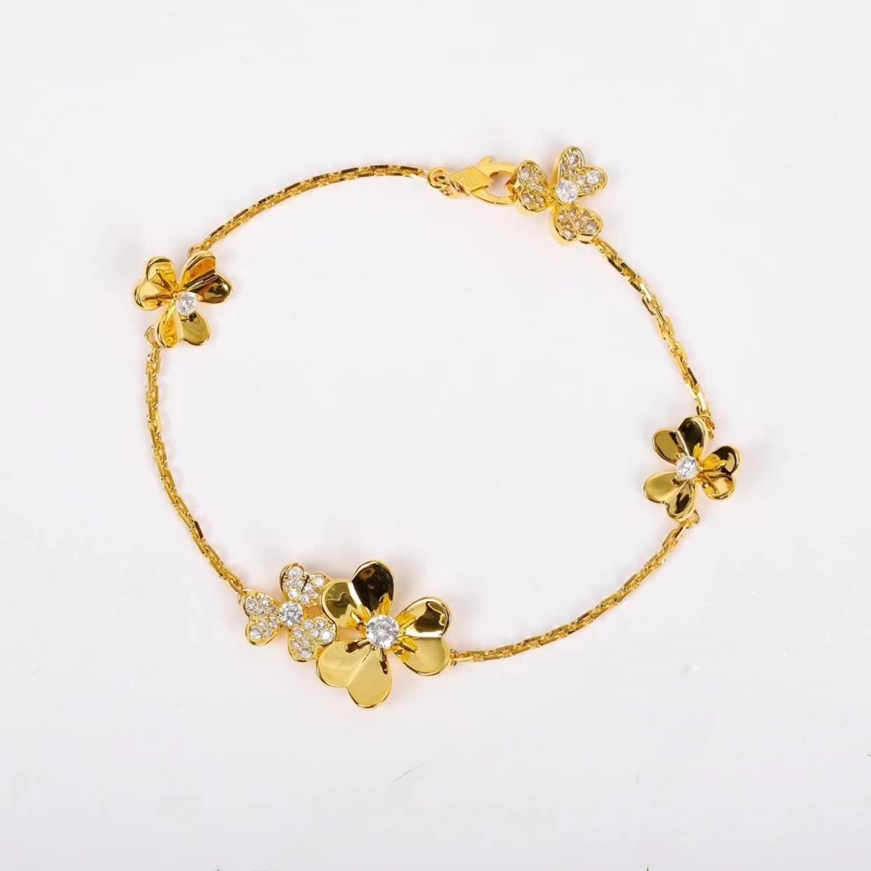 Color: Three-leaf Five-Flower Bracelet [yellow gold]]