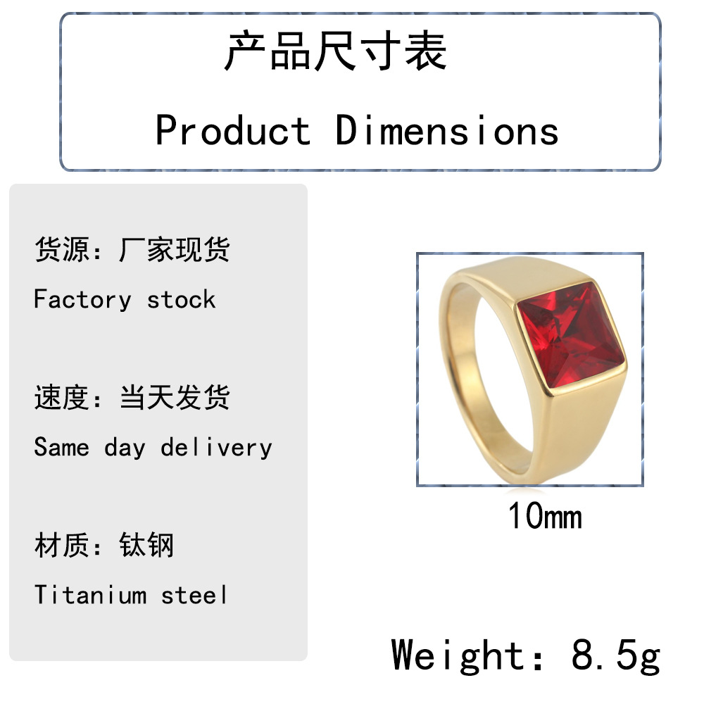 Europe and the United States new titanium steel inlaid zircon ring retro Cropunk fashion women's stainless steel ruby ring manufacturers straight