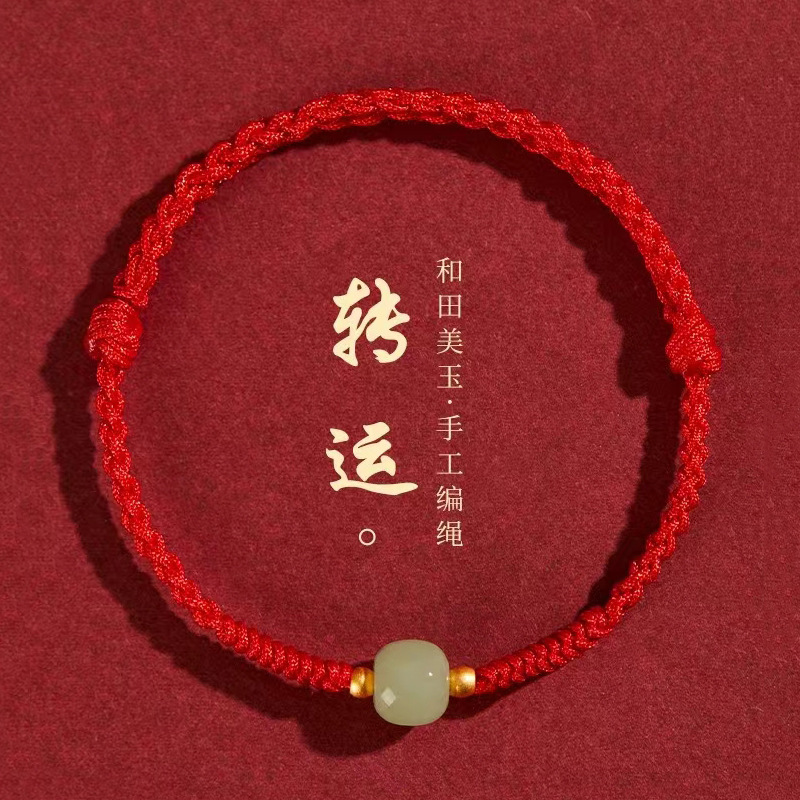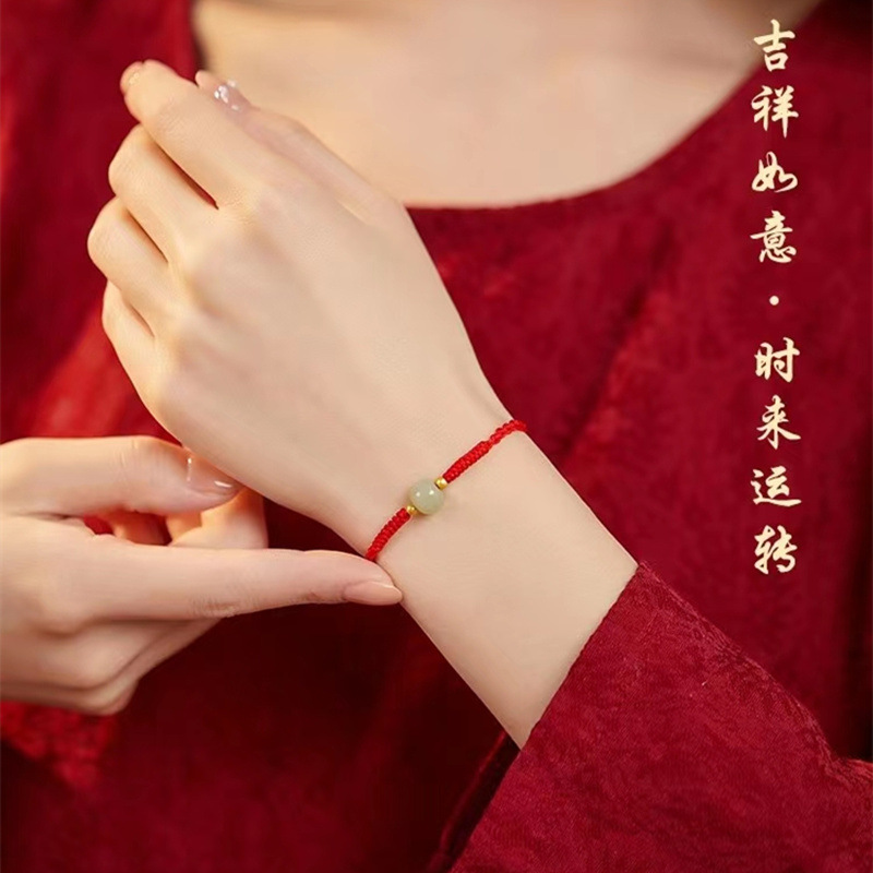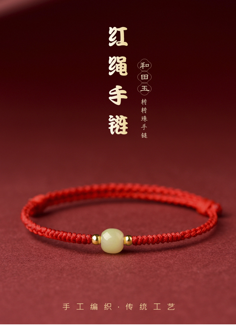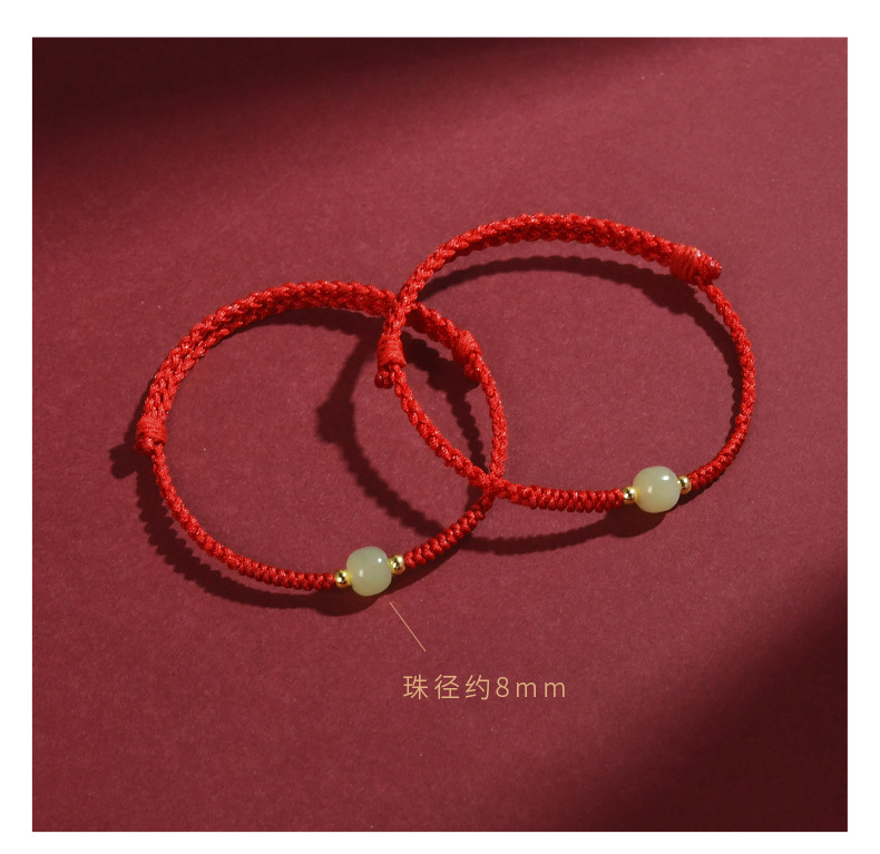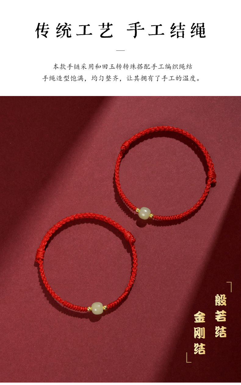 Color: [Red] lucky beads Hetian jade hand rope
