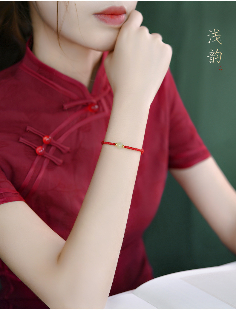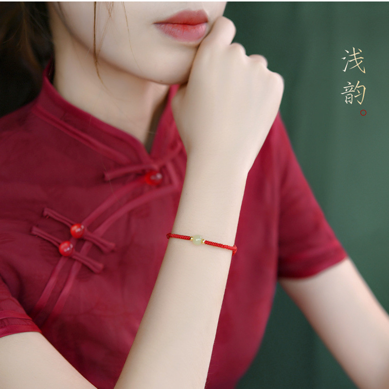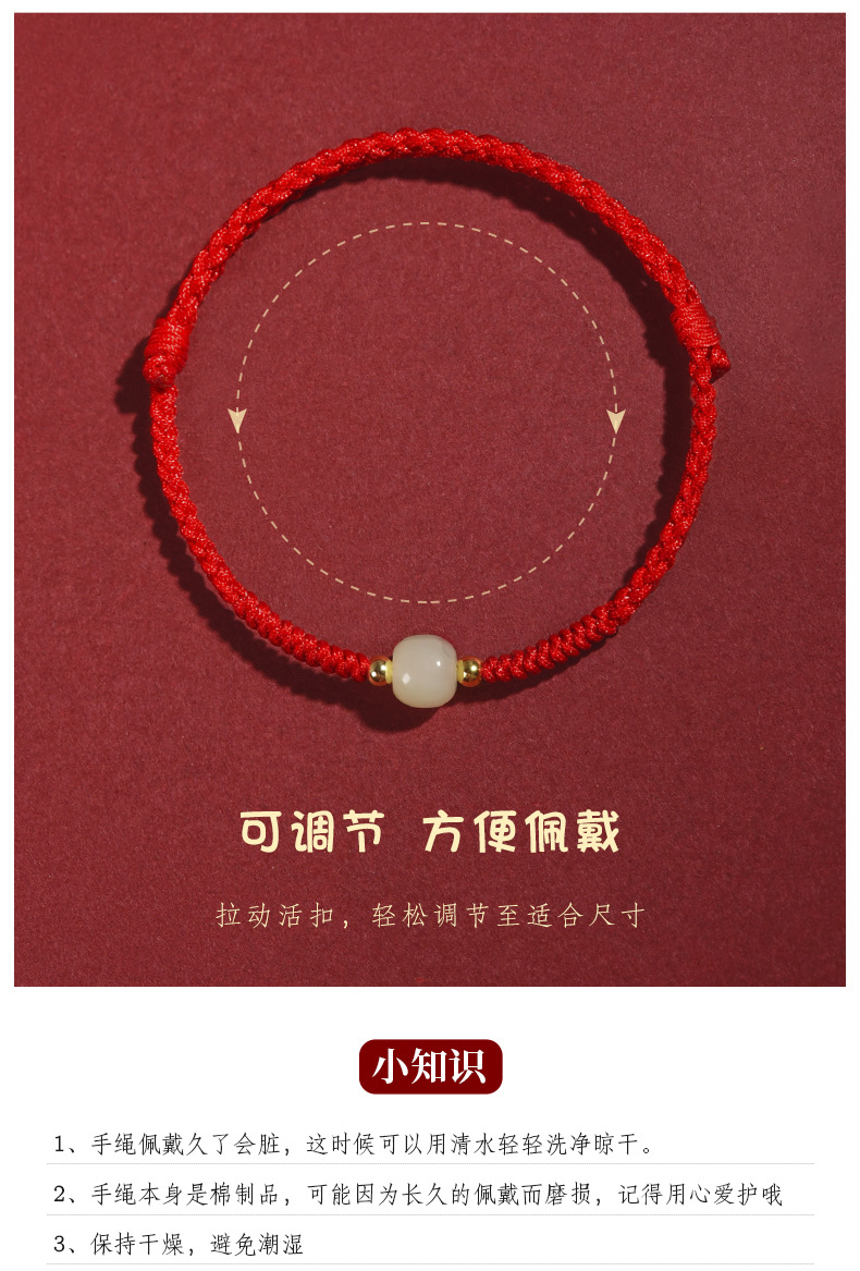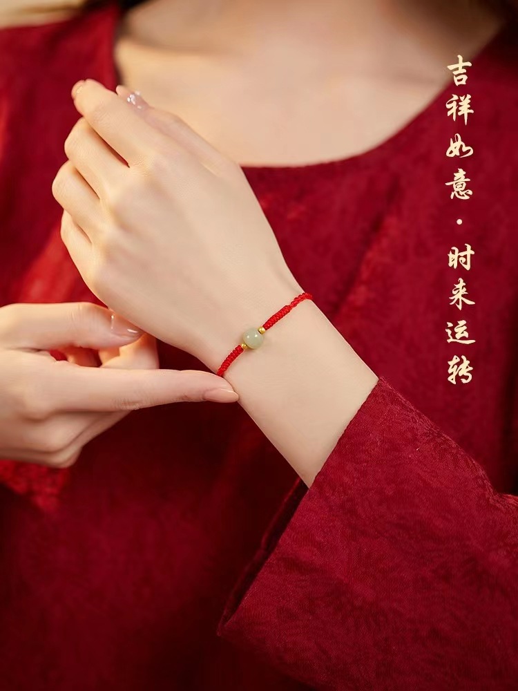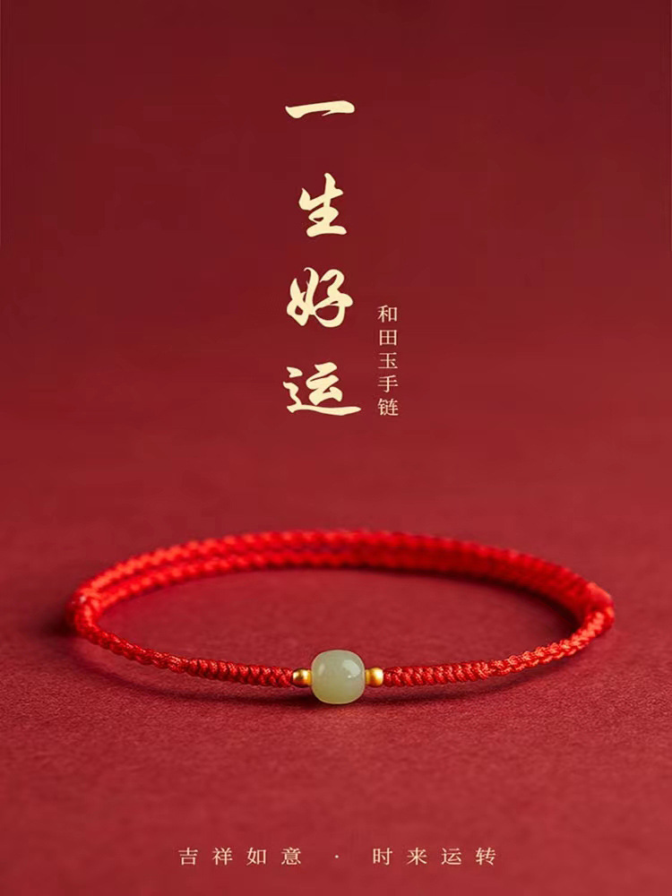Color: [Red] lucky beads Hetian jade hand rope