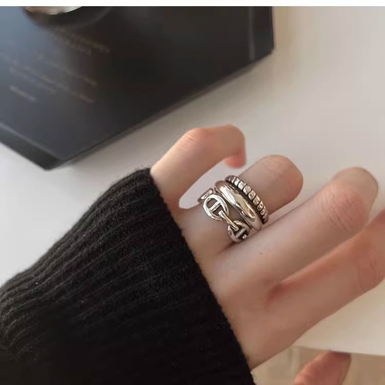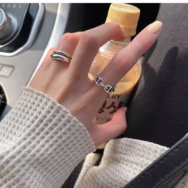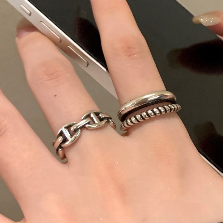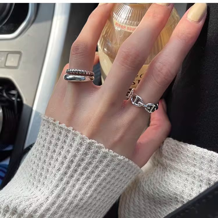 New style pig nose double-layer glossy twist thickened Korean style personalized trendy ring ins style niche distressed ring
