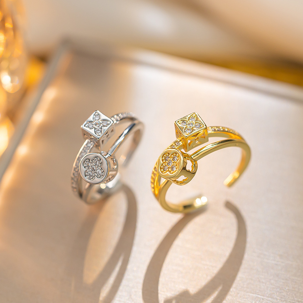 South Korea's Dongdaemun Double-Layer Micro-Paved Zircon Ring Simple Women's Fashion Stylish Cold Style Open Ring for Women