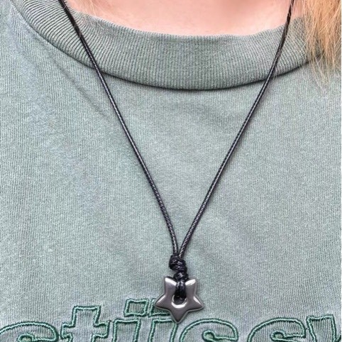 South Korea ins style hollow star five-pointed star black rope necklace niche design retro simple all-match y2g hot girl