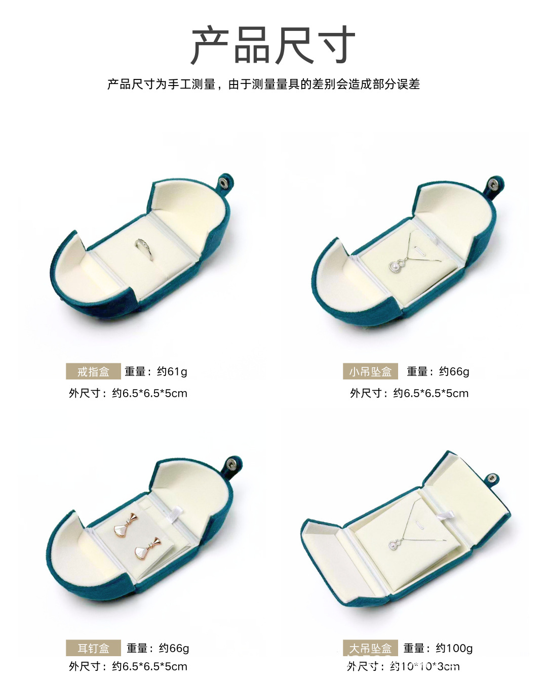 Specification: Ring box 6.5*6.5*5cm, pearl chain 19*19*4cm, small pendant box 6.5*6.5*5cm,