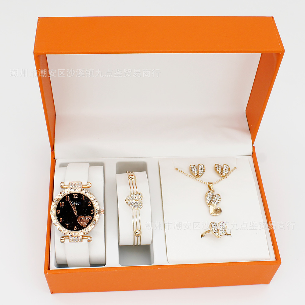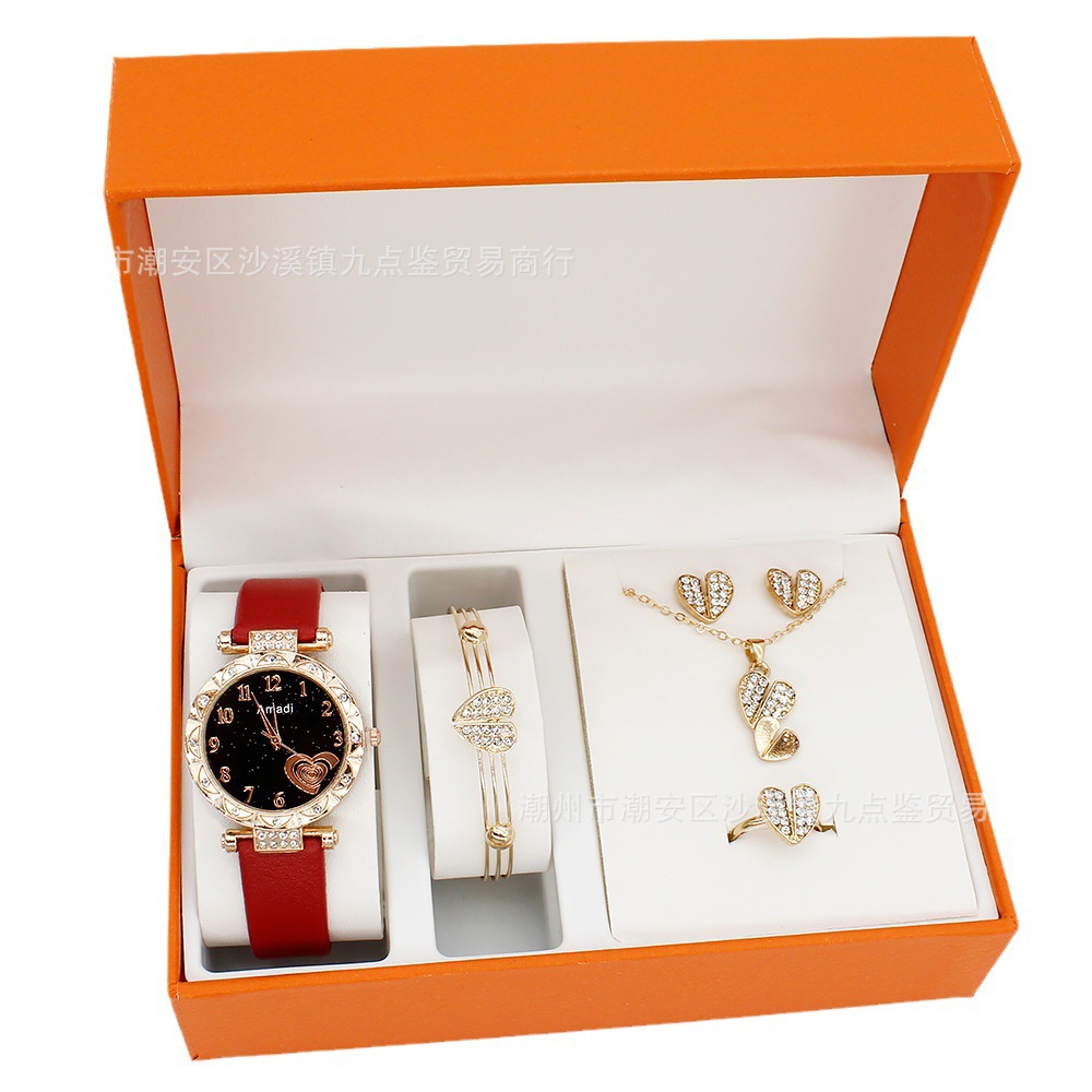 Color: Red Hand Watch + diamond heart stretch bracelet suit