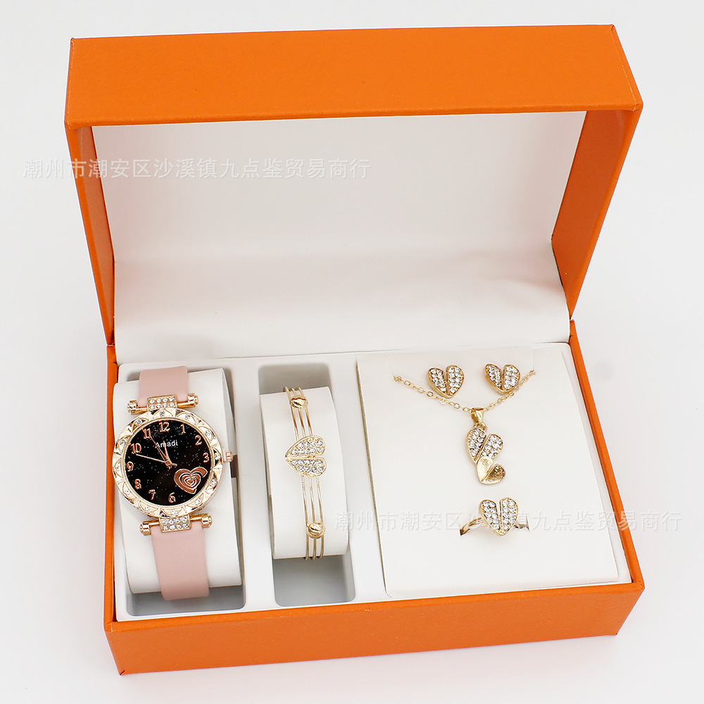 Color: Pink Watch + diamond elastic bracelet suit + box
