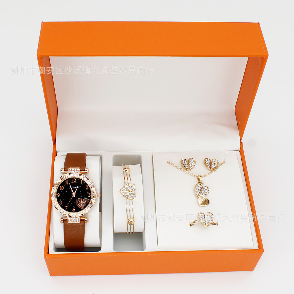 Color: Brown Watch + diamond elastic bracelet suit + box