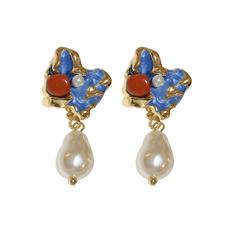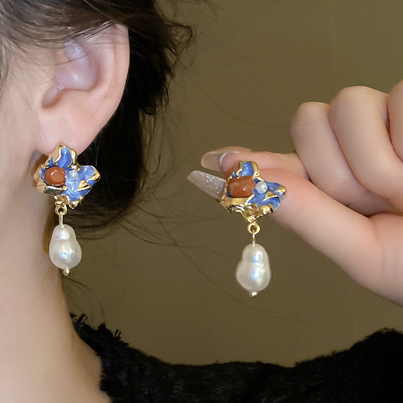 Middle Ancient Oil Dropping Irregular Imitation Pearl Silver Earrings French Retro Niche High-end Elegant Internet Celebrity Earrings for Women