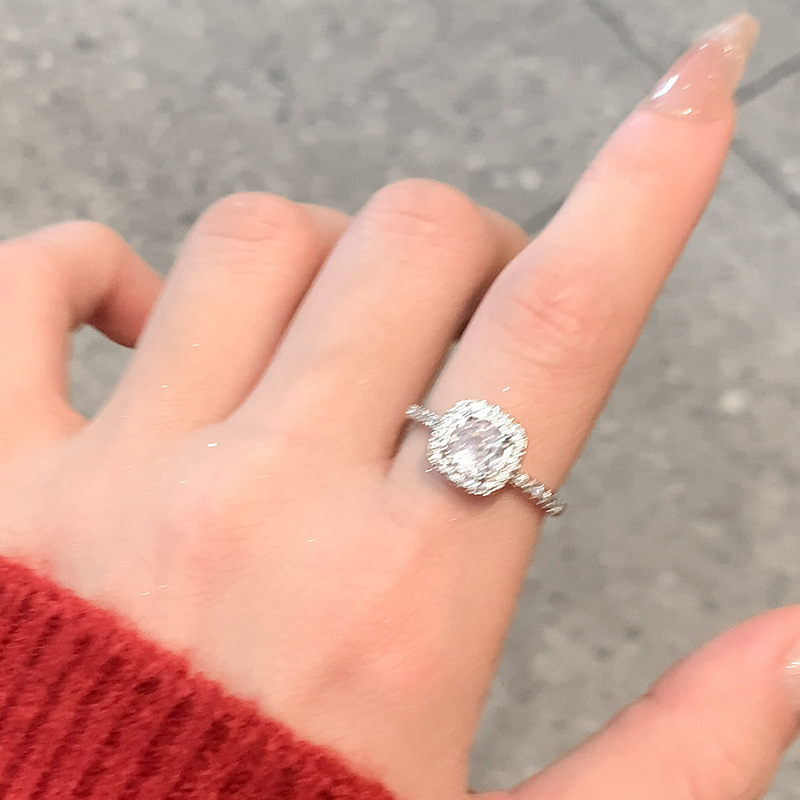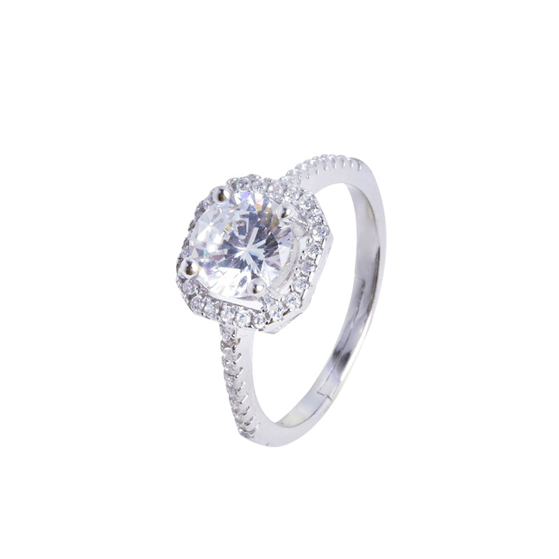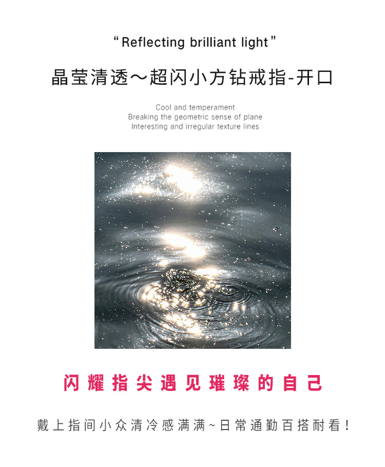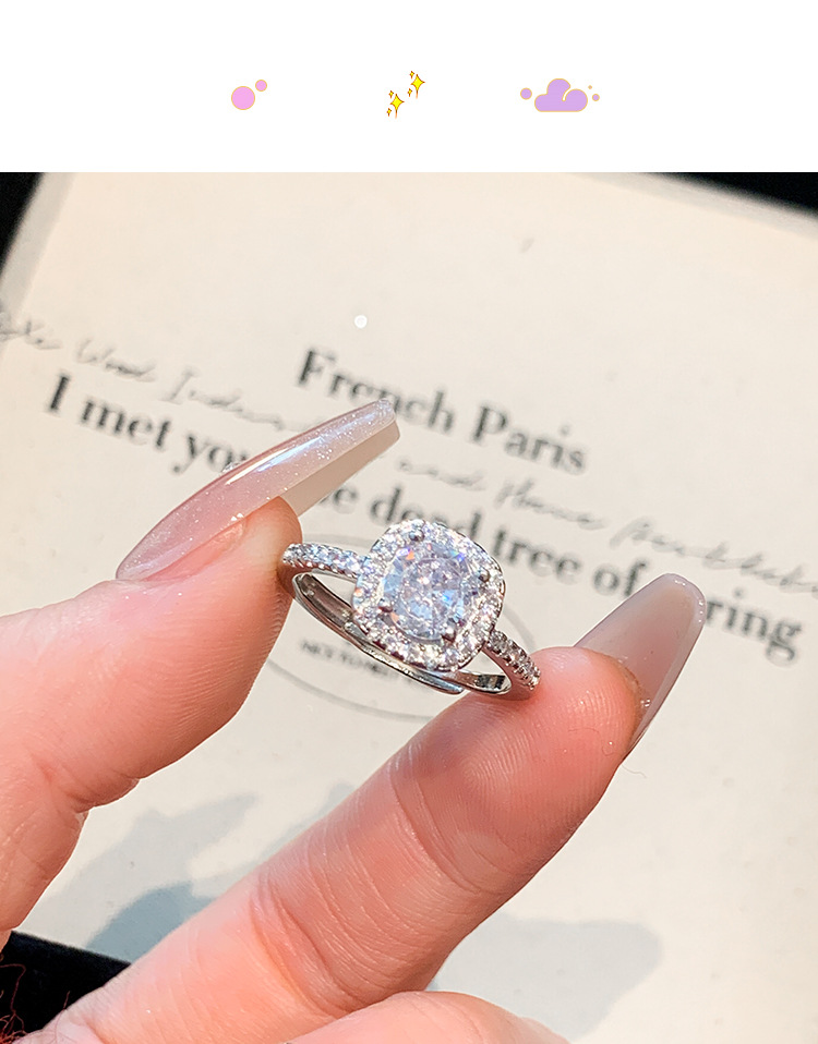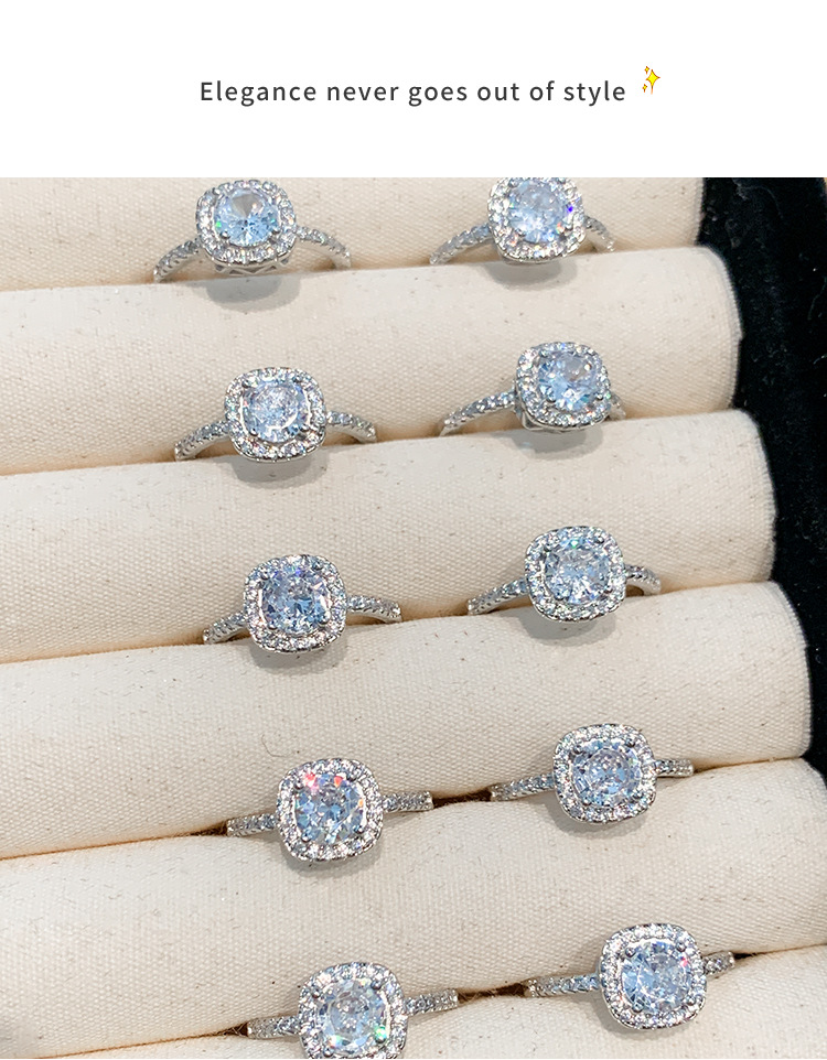 Silver-Plated Copper Small Square Sugar Ring for Women, Light Luxury High-End Minimalist Band Ring, Niche Design Tail Ring with Rhinestones, Index Finger Ring