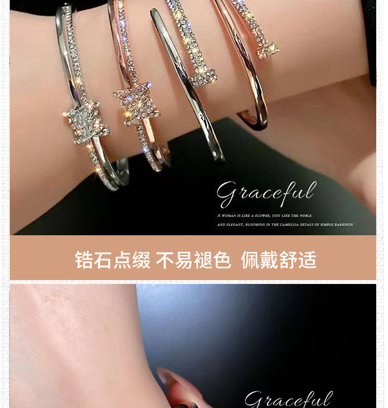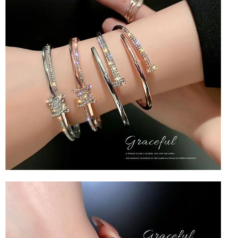 Bracelet Customized Ins Style High-End Open Nail Bracelet Adjustable Fashion Bracelet Bracelet Women's Diamond Jewelry