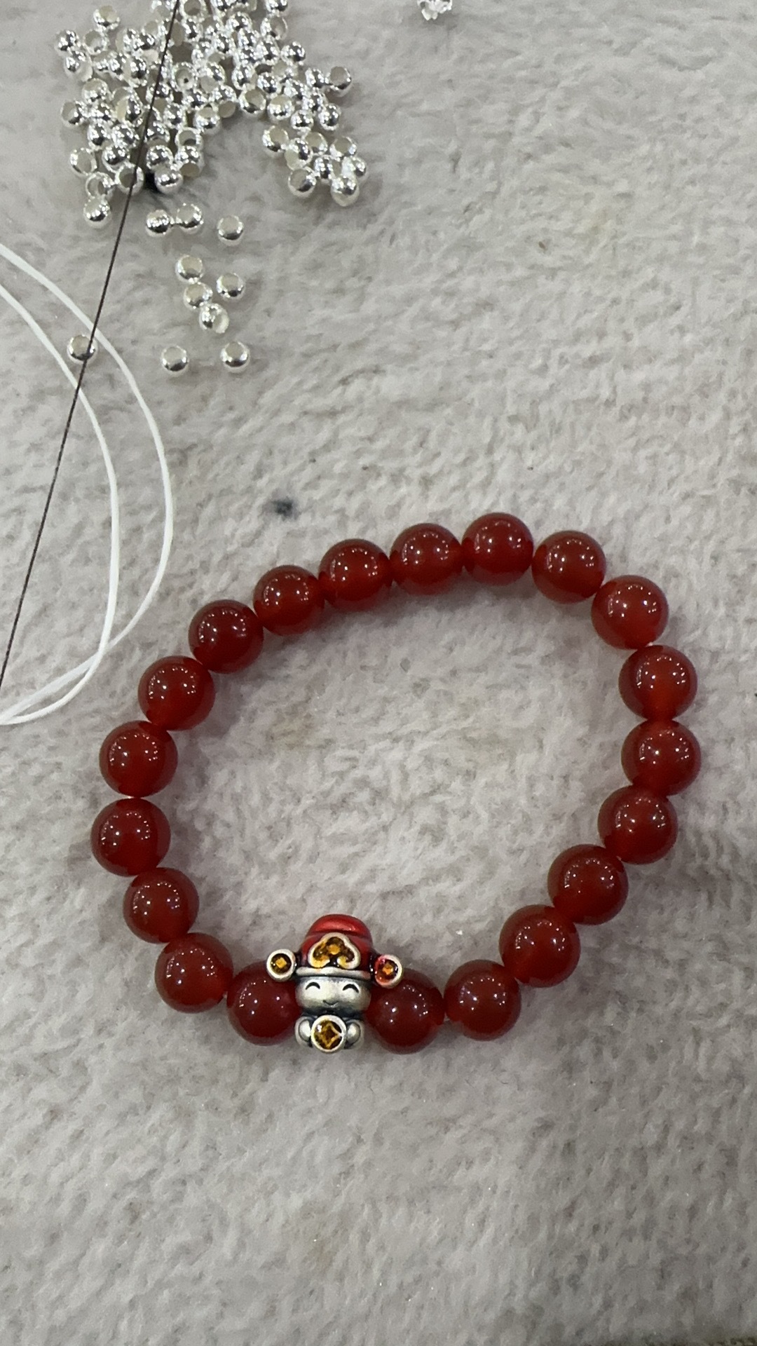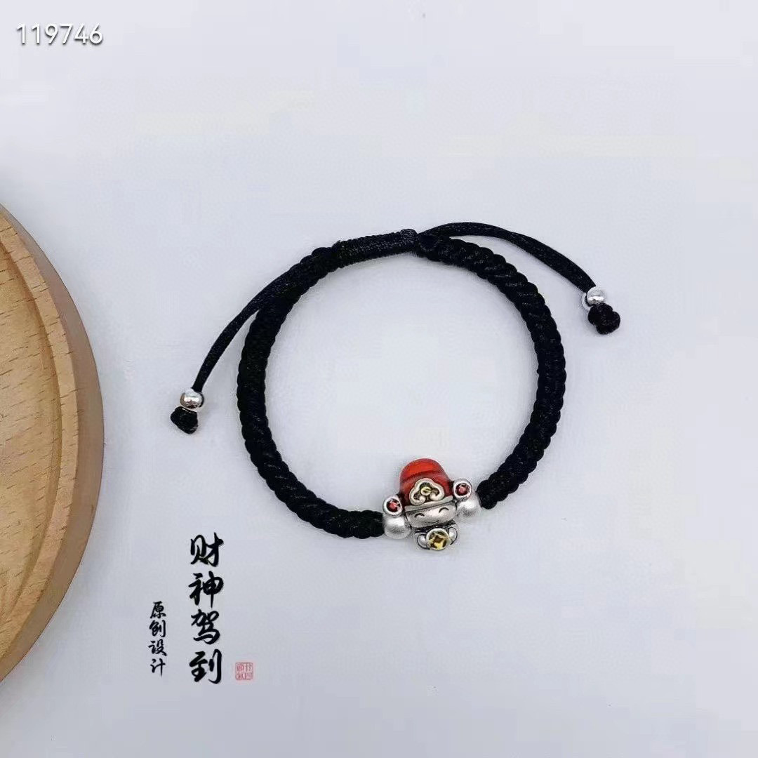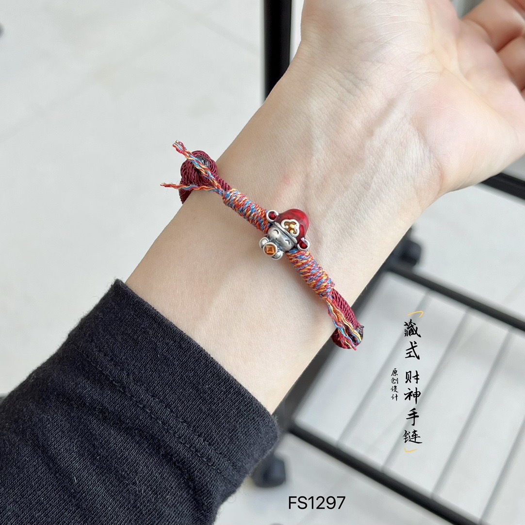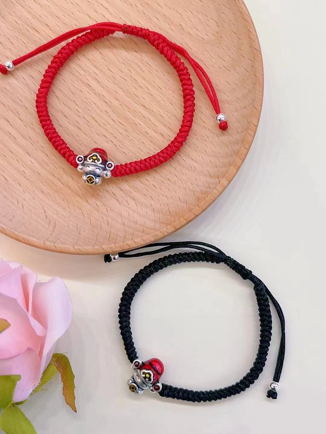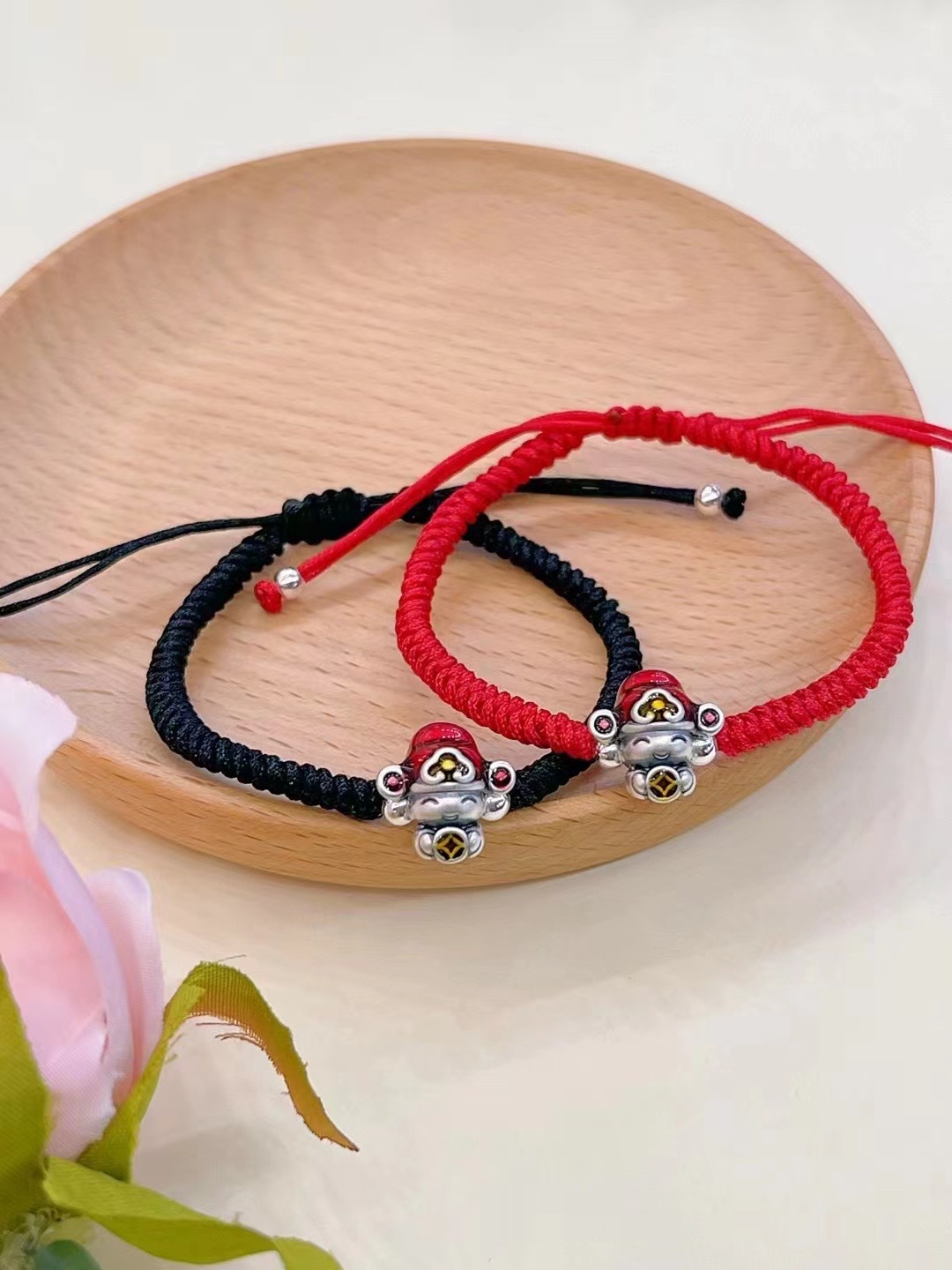 Pure Silver S999 small God of Wealth ring ring niche design silver beads New Year color epoxy God of Wealth elastic ring