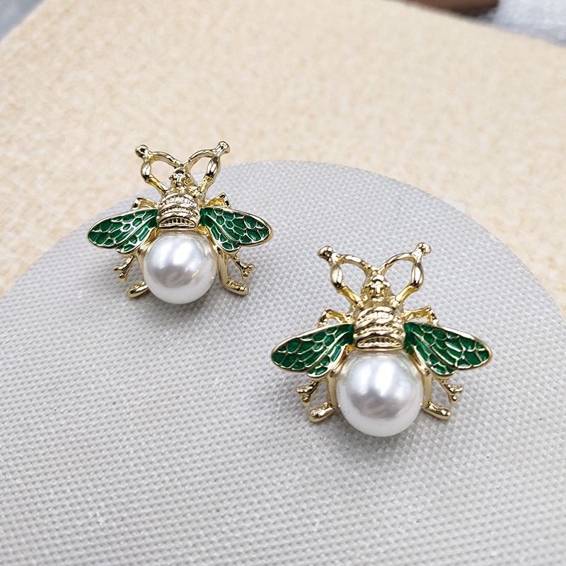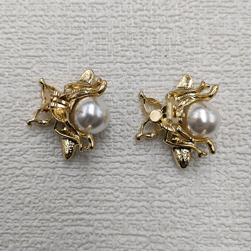 Silver Needle bee round pearl earrings French retro Court Style Earrings vintage Chinese style earrings B841