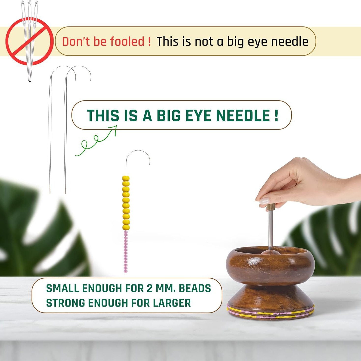 使用方法:在碗里装满三分之一的米珠,将串珠线放在一根长而弯曲的串珠针上,在旋转时将你的针插入碗中(请观看视频或图片)。