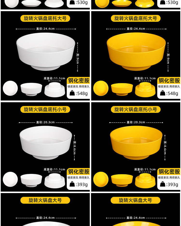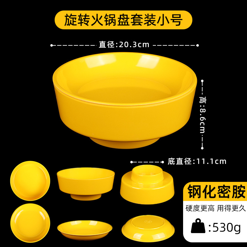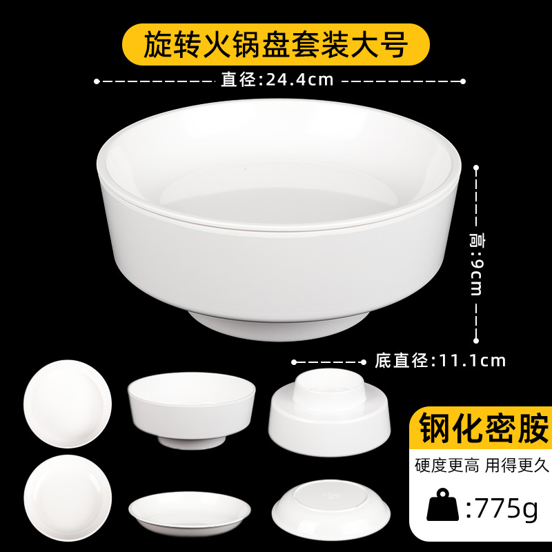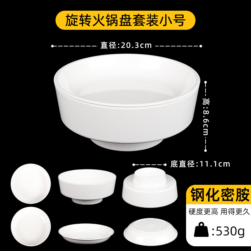 Self-service rotating small hot pot rotating bowl Internet celebrity multi-functional hot pot restaurant side dish melamine double-layer rinse display plate
