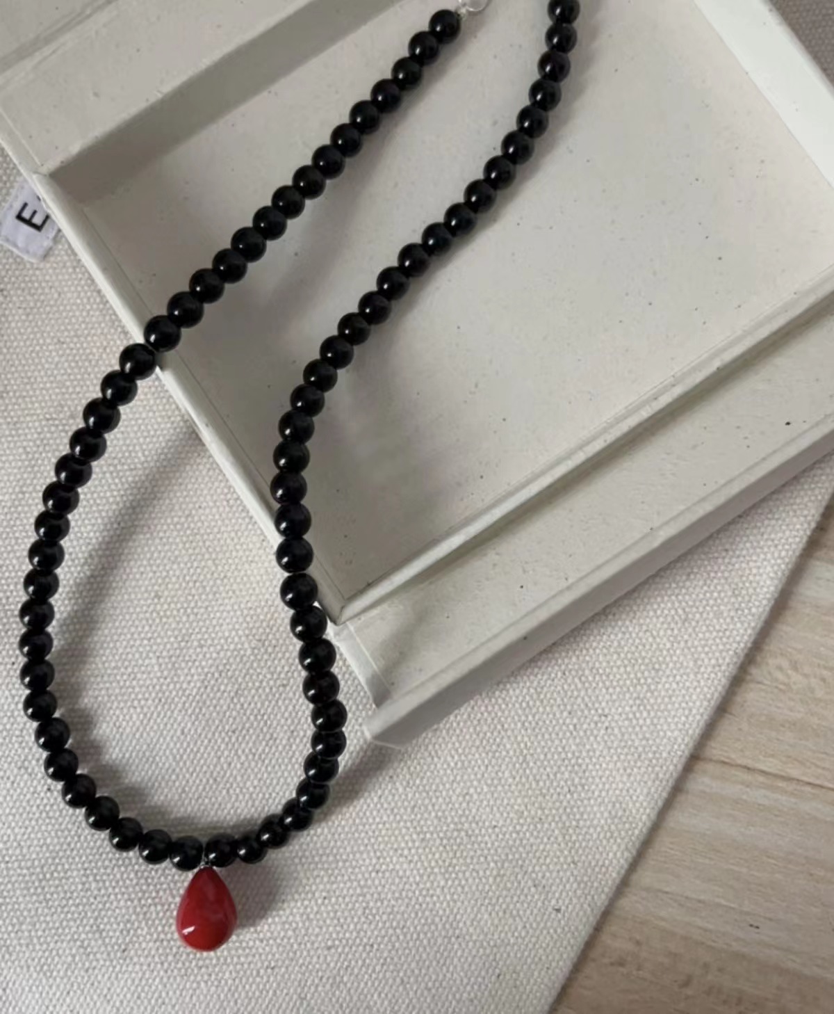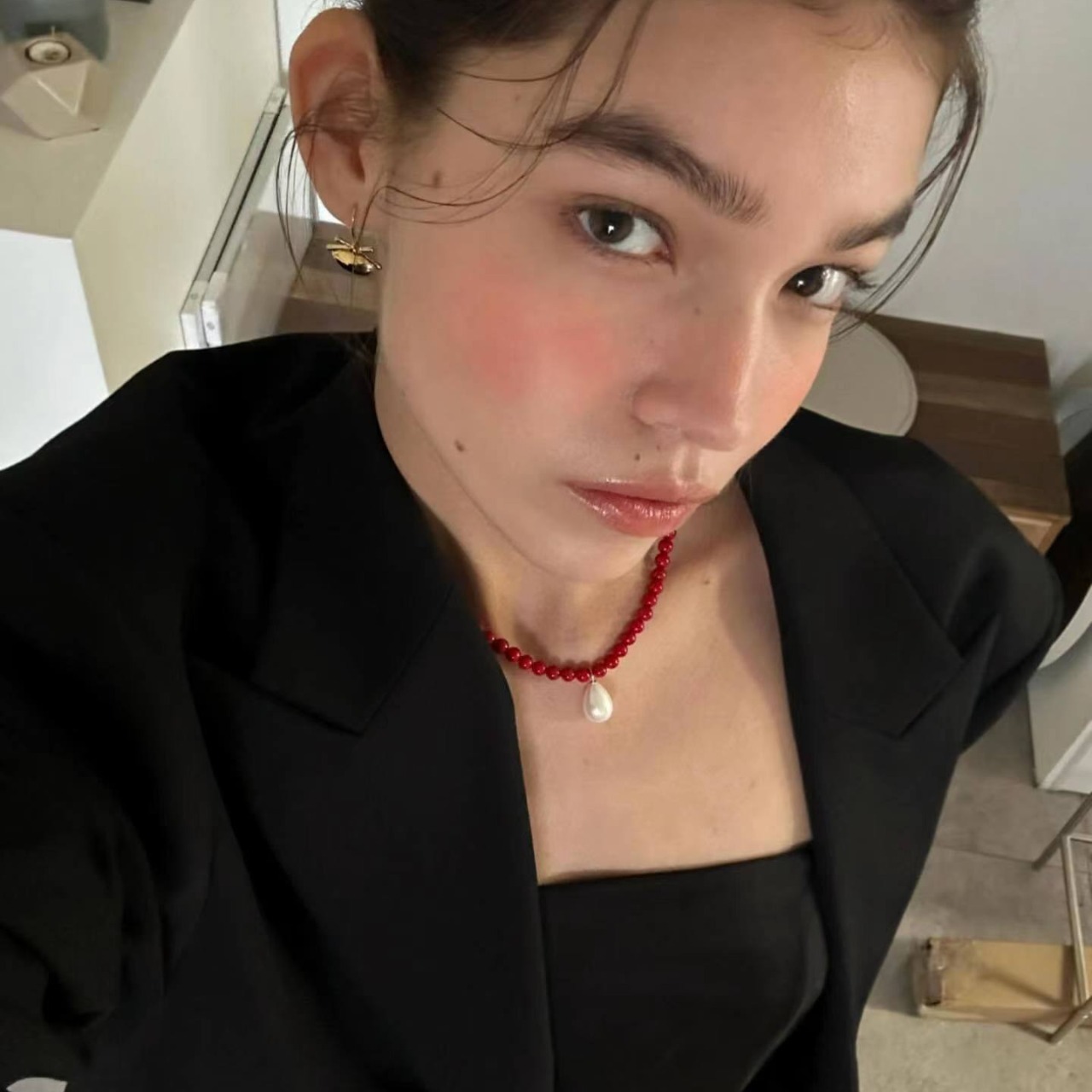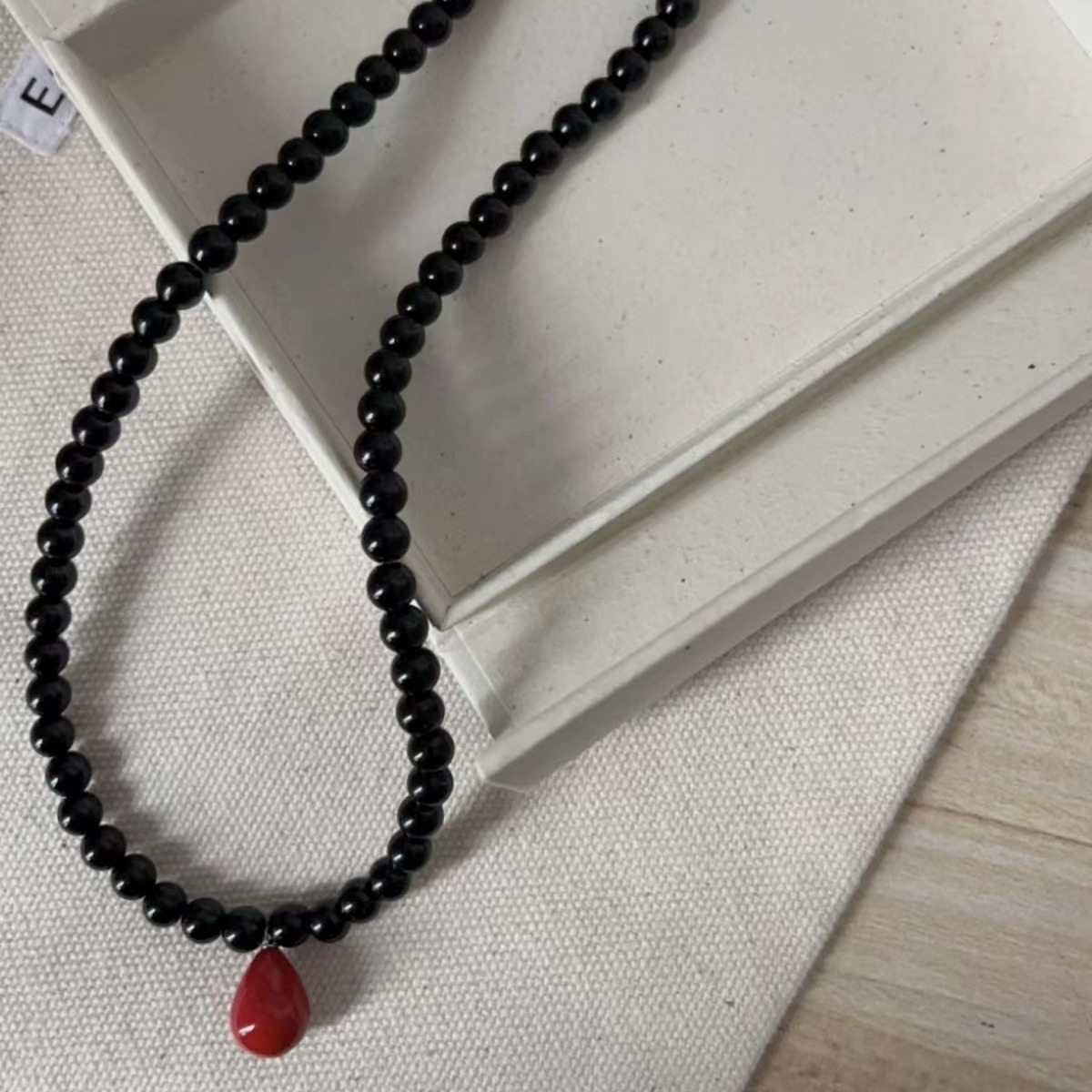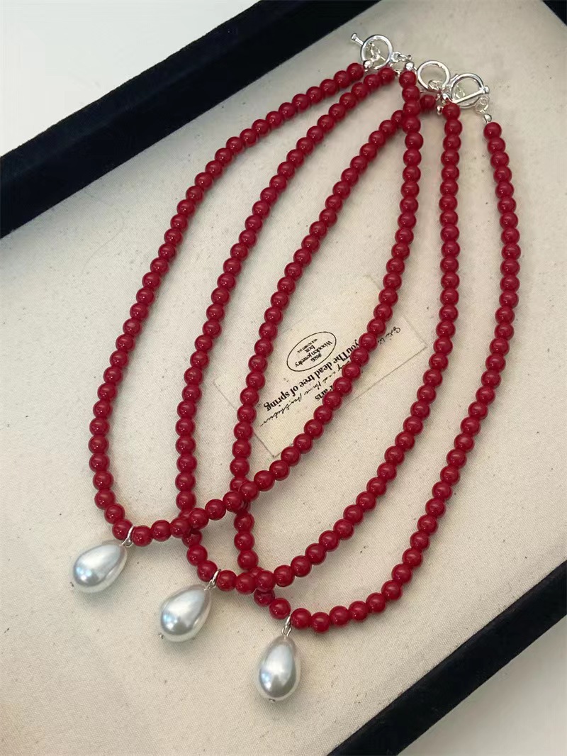 ins South Korea bornete same style Christmas with red necklace New Year red lucky pearl pendant clavicle chain
