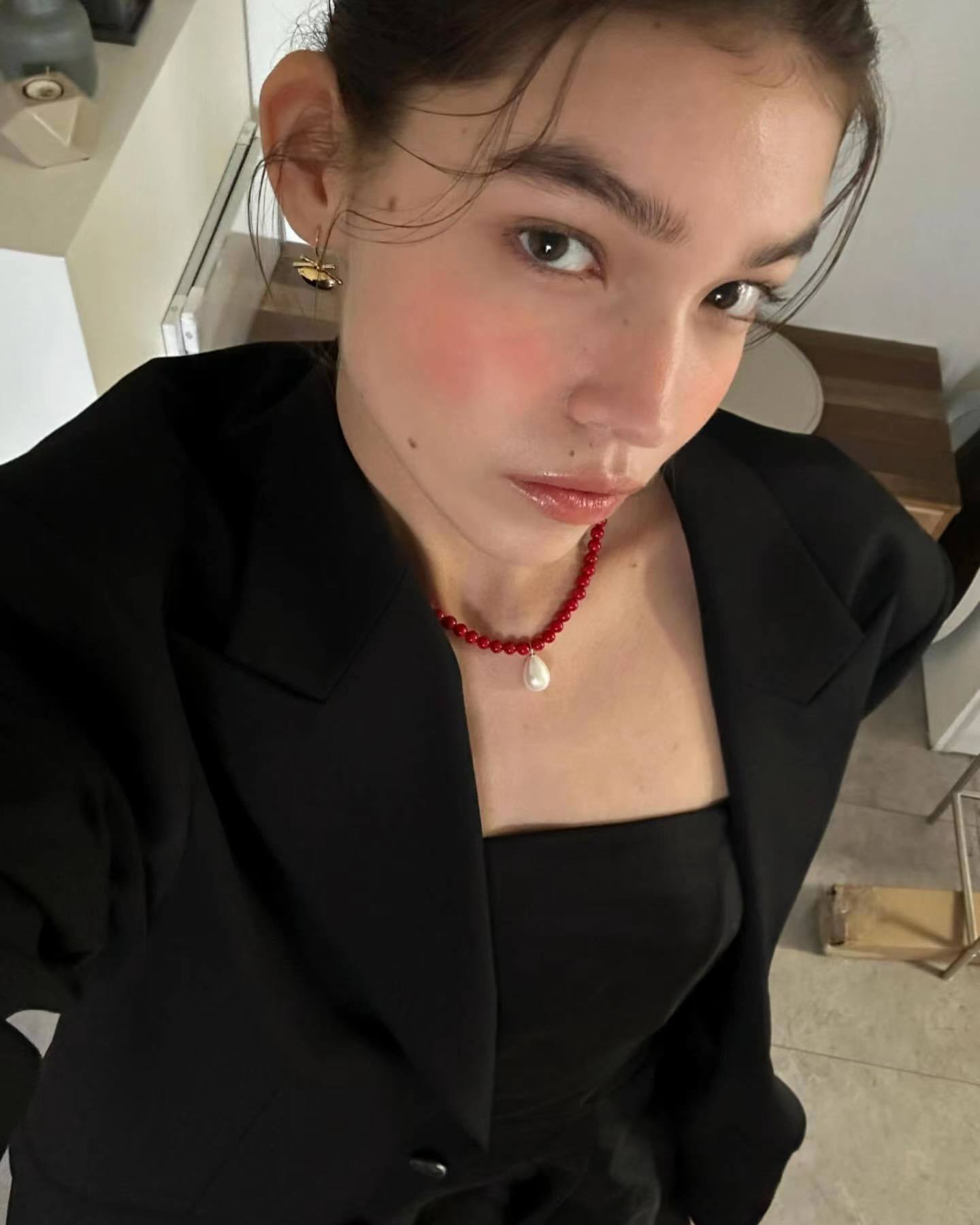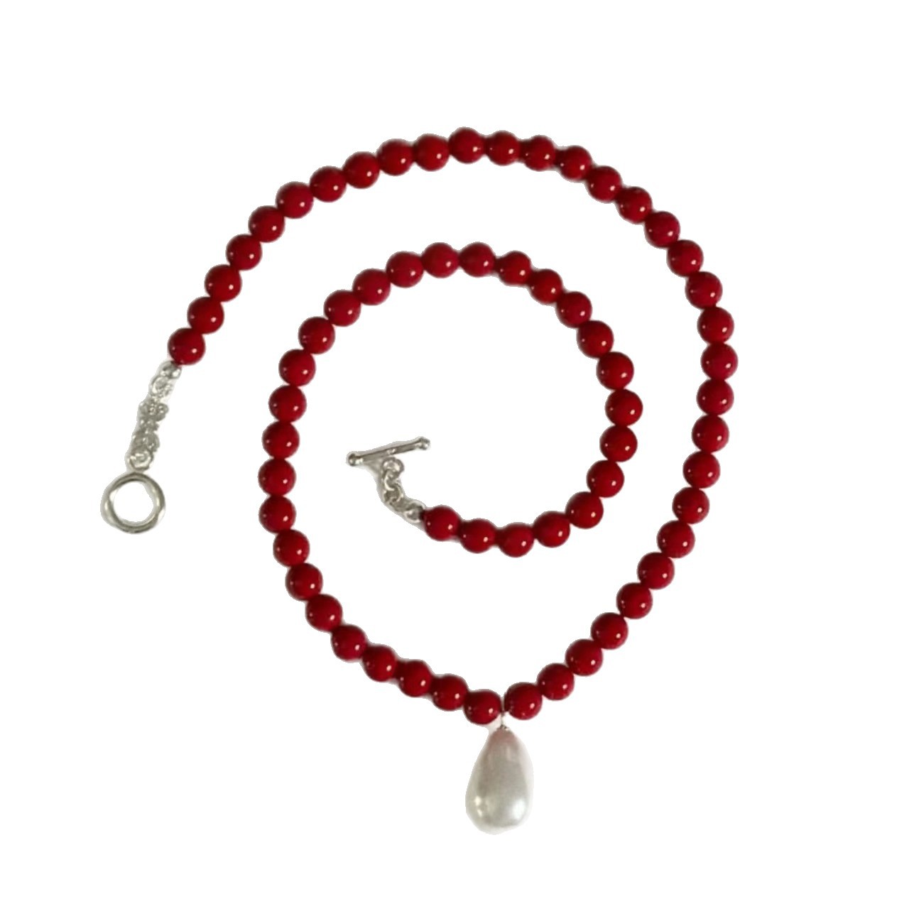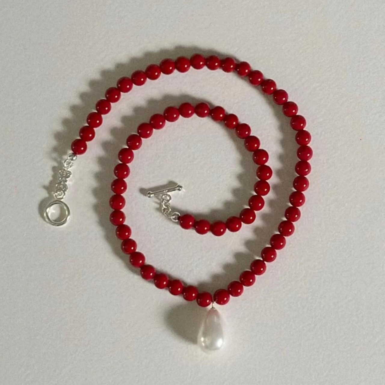 ins South Korea bornete same style Christmas with red necklace New Year red lucky pearl pendant clavicle chain