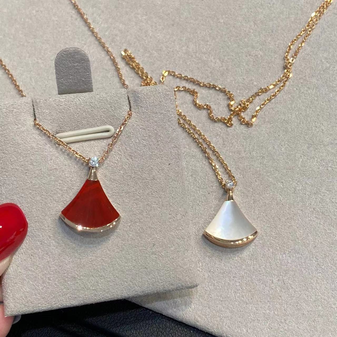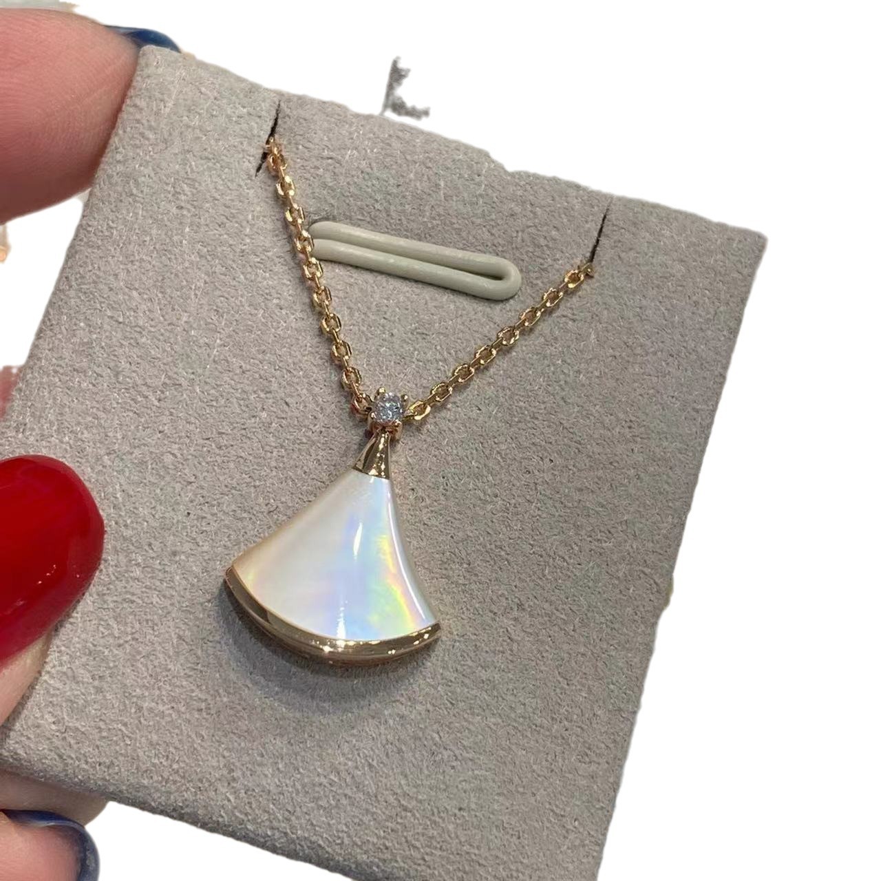 Baojia V Gold High-Quality Small Skirt Necklace 3Rd Generation Small Fan-Shaped 18K Rose Gold Carnelian Lock Fashion Bone Chain