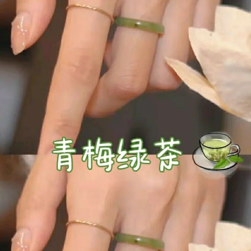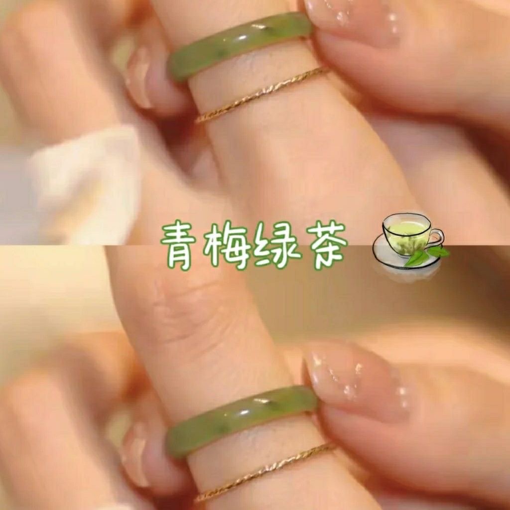 Green Plum Green Tea jade ring female niche design sense White Tea refreshing lychee frozen plain ring fashion personality ancient plain ring