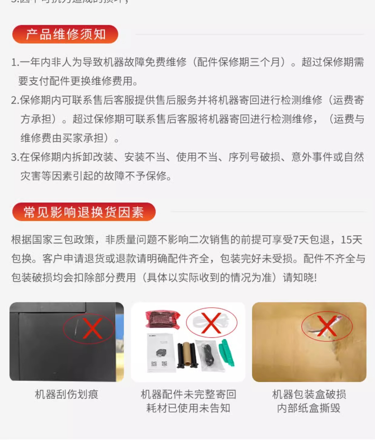 【温馨提示】打印机保修一年,各品牌打印头统一保修标准都是3个月或者30公里(先到者为准)