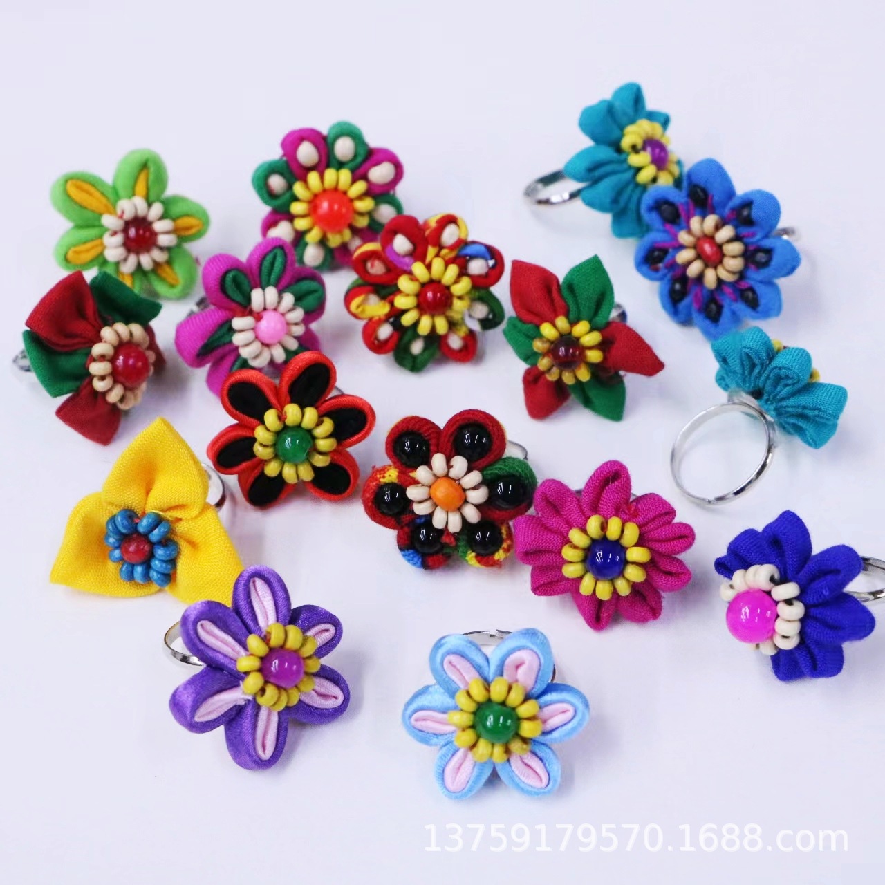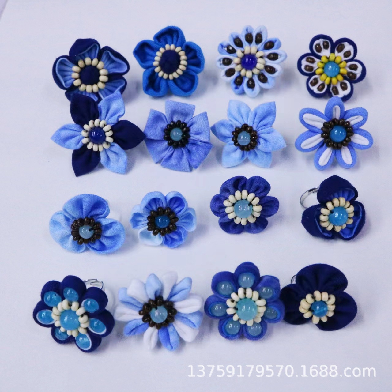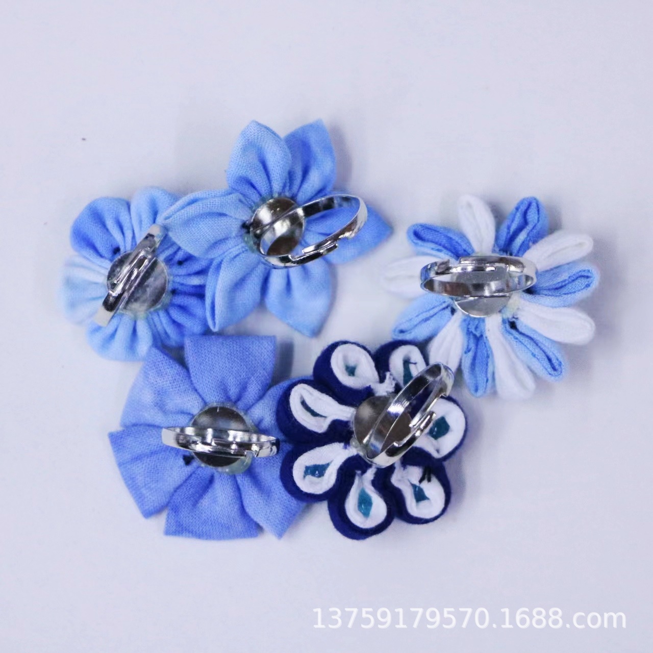 Yunnan ethnic style blue dyed tie-dyed fabric ring size adjustable factory wholesale
