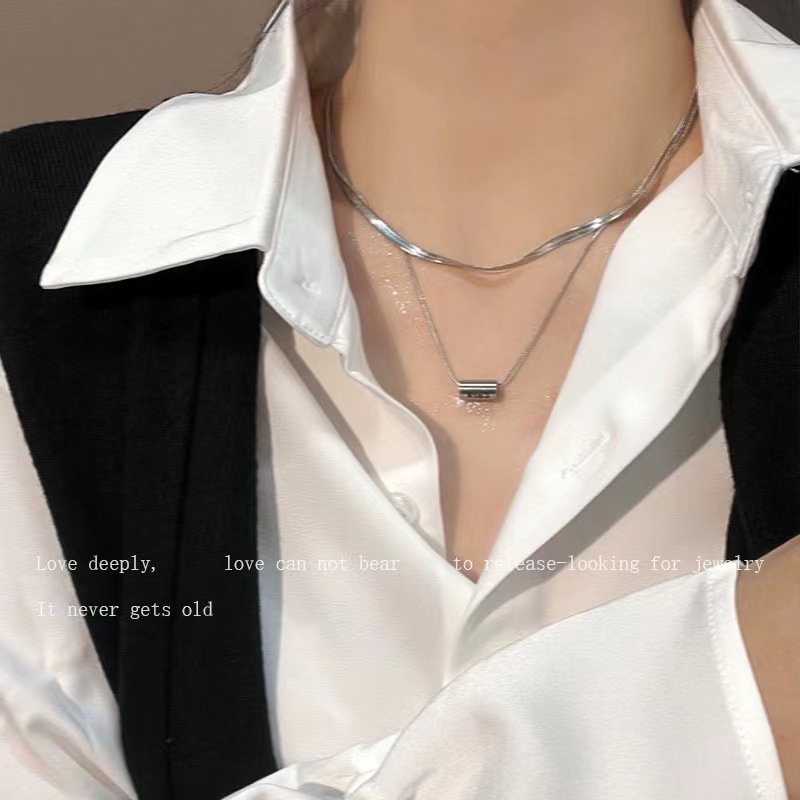 Titanium Steel Double-Layer Decorative Necklace for Boys and Ladies Clavicle Chain 2024 New Hot Style Popular Accessible Luxury Niche