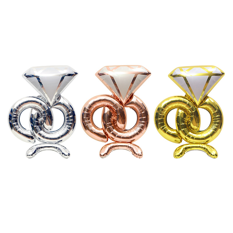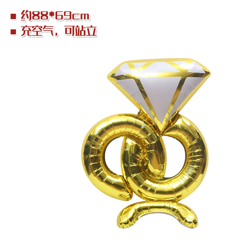 Wedding wedding room jewelry shop decoration balloon 4D three-dimensional standing diamond ring shape cartoon aluminum film balloon