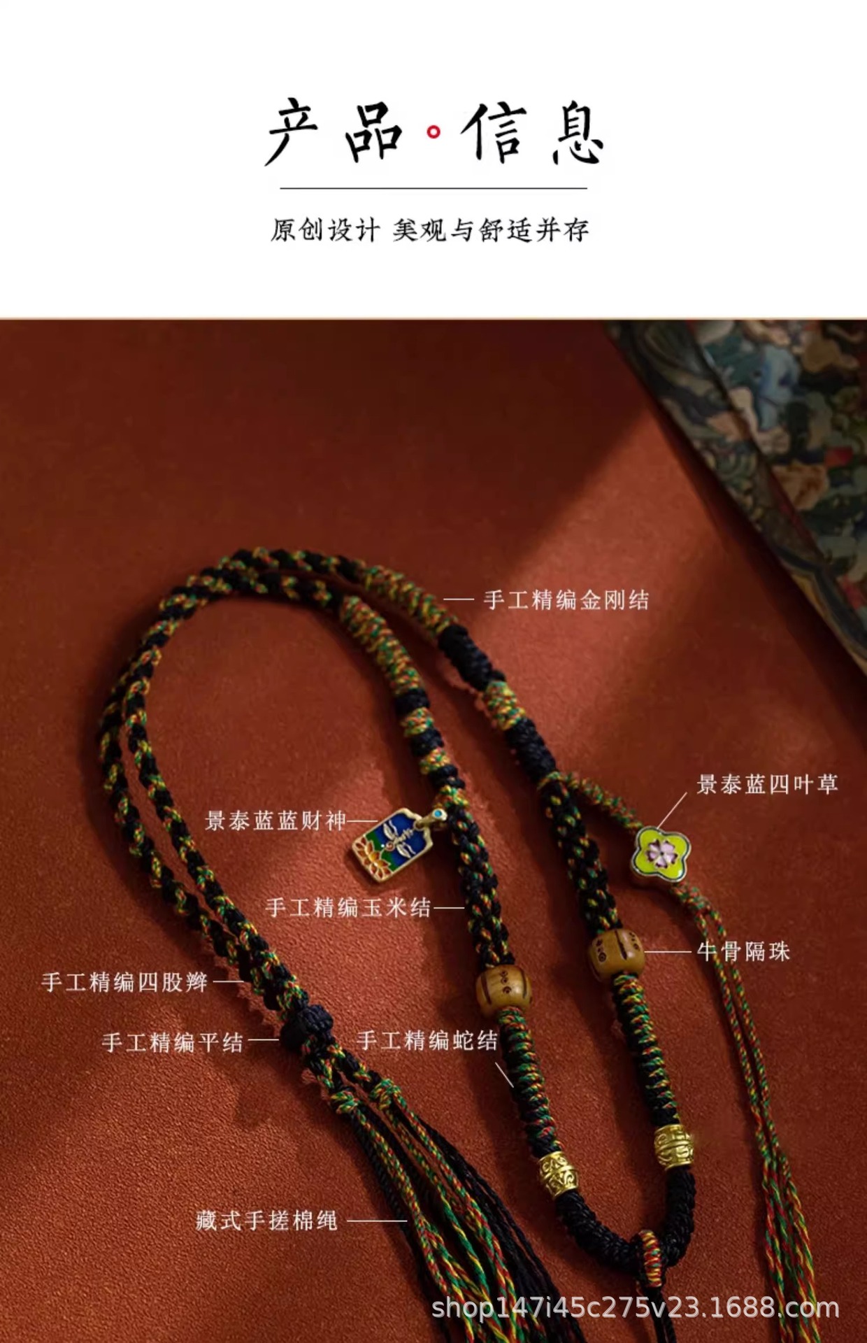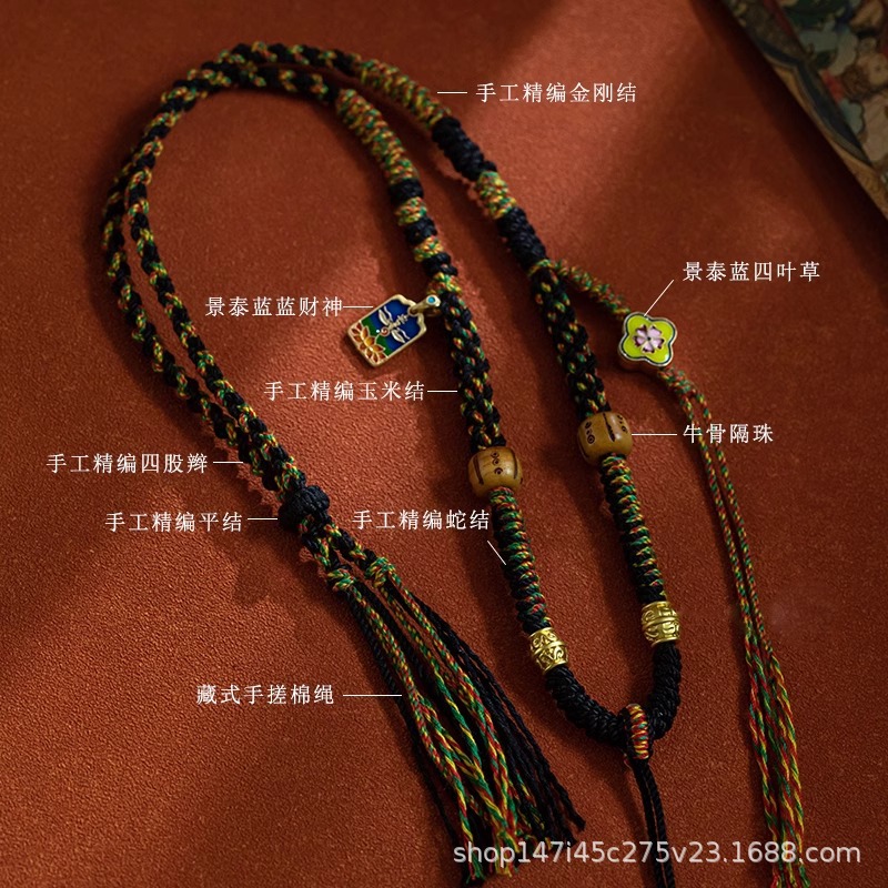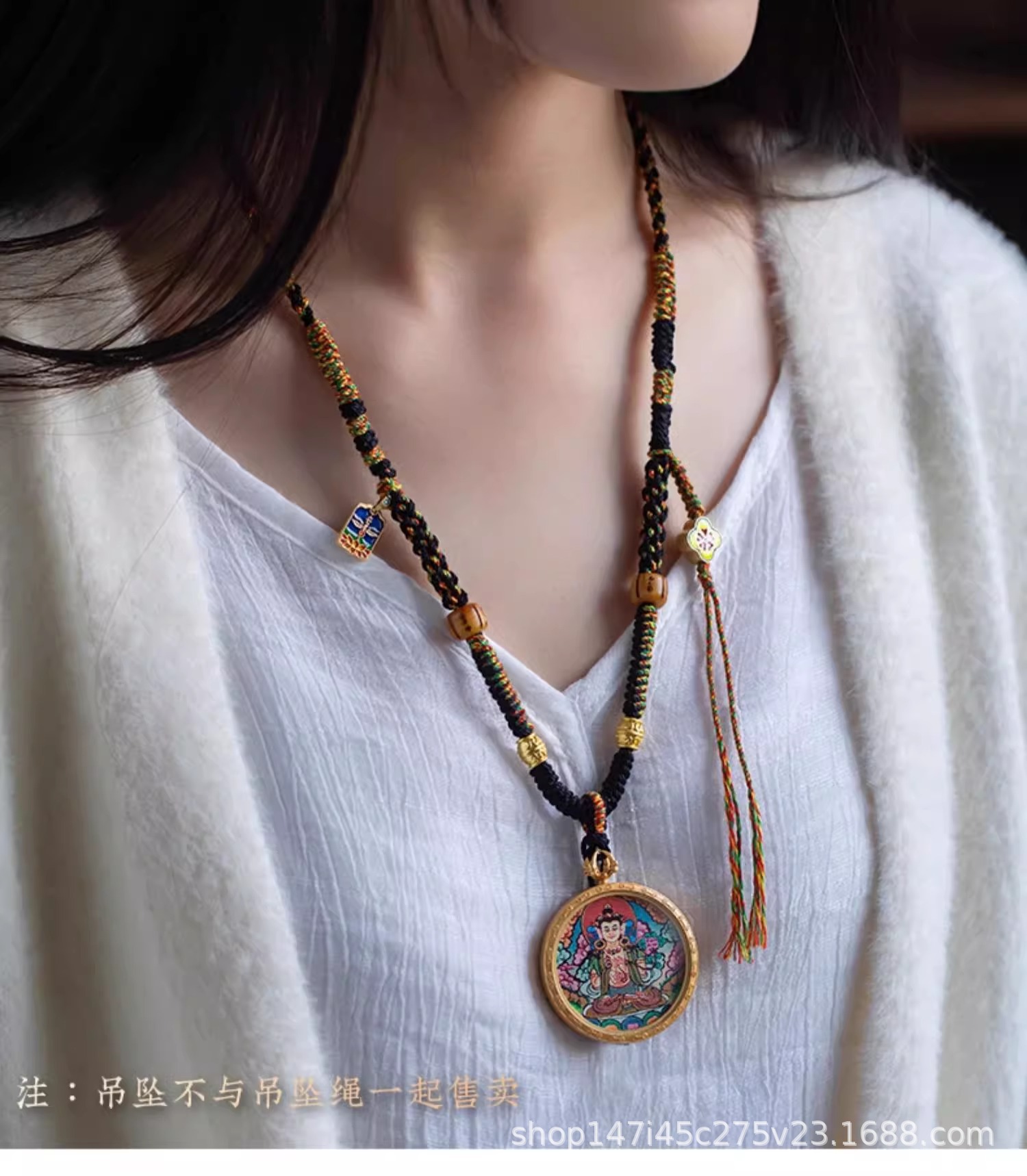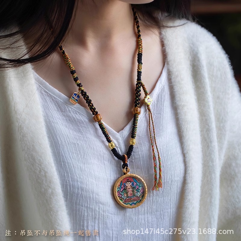 Xizang Handmade Fine-woven Pendant Rope Neck Cloisonne Ethnic Style Thangka Buddha Beeswax Pendant Necklace with Rope