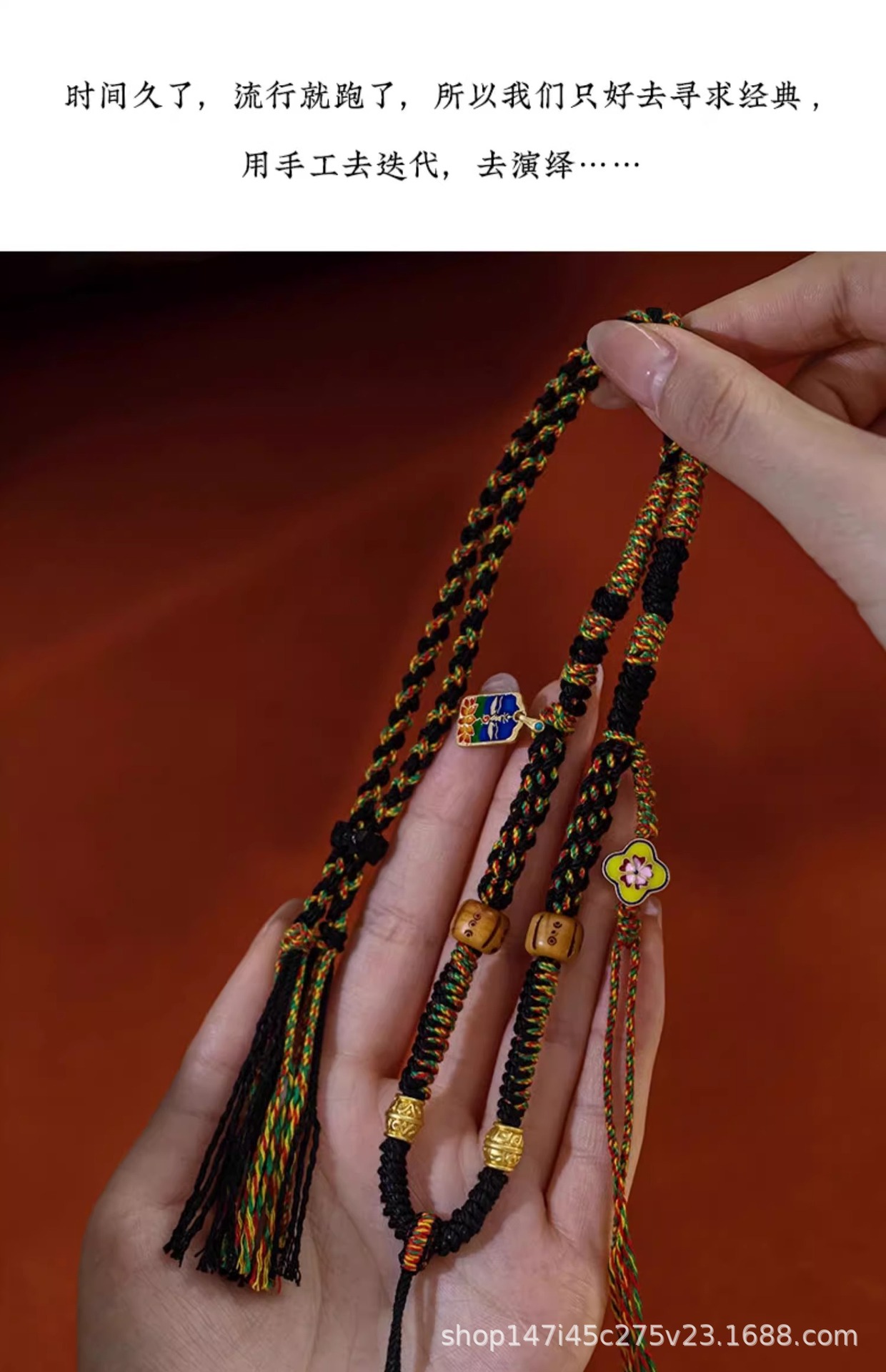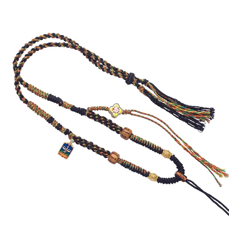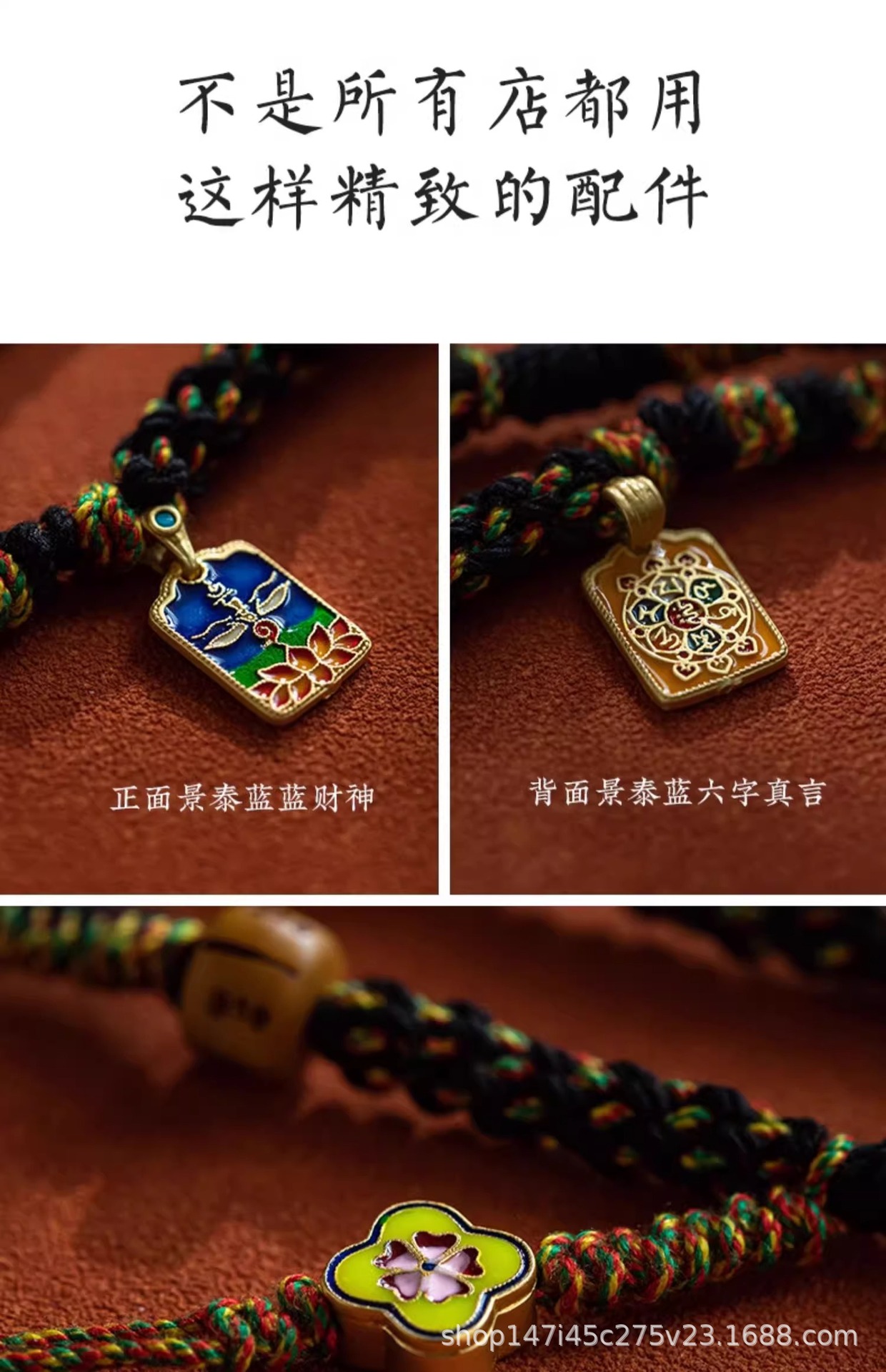 Xizang Handmade Fine-woven Pendant Rope Neck Cloisonne Ethnic Style Thangka Buddha Beeswax Pendant Necklace with Rope