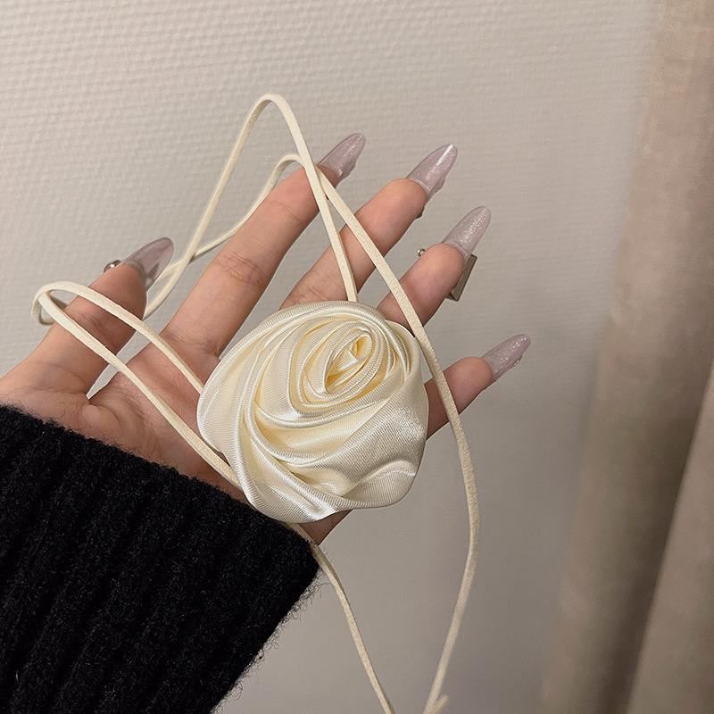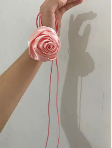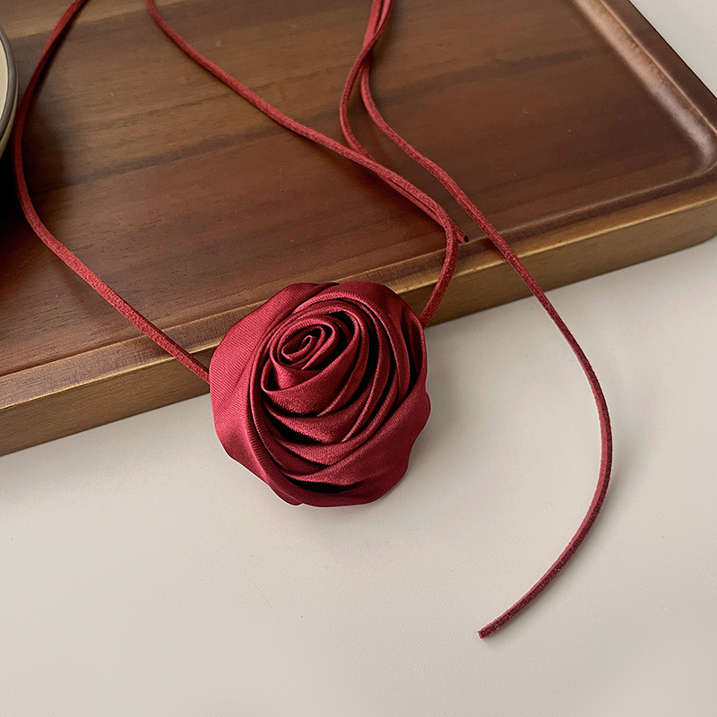 小众复古纯欲玫瑰花choker手工项圈手腕花丝绸项链女性感腰绳绑带
