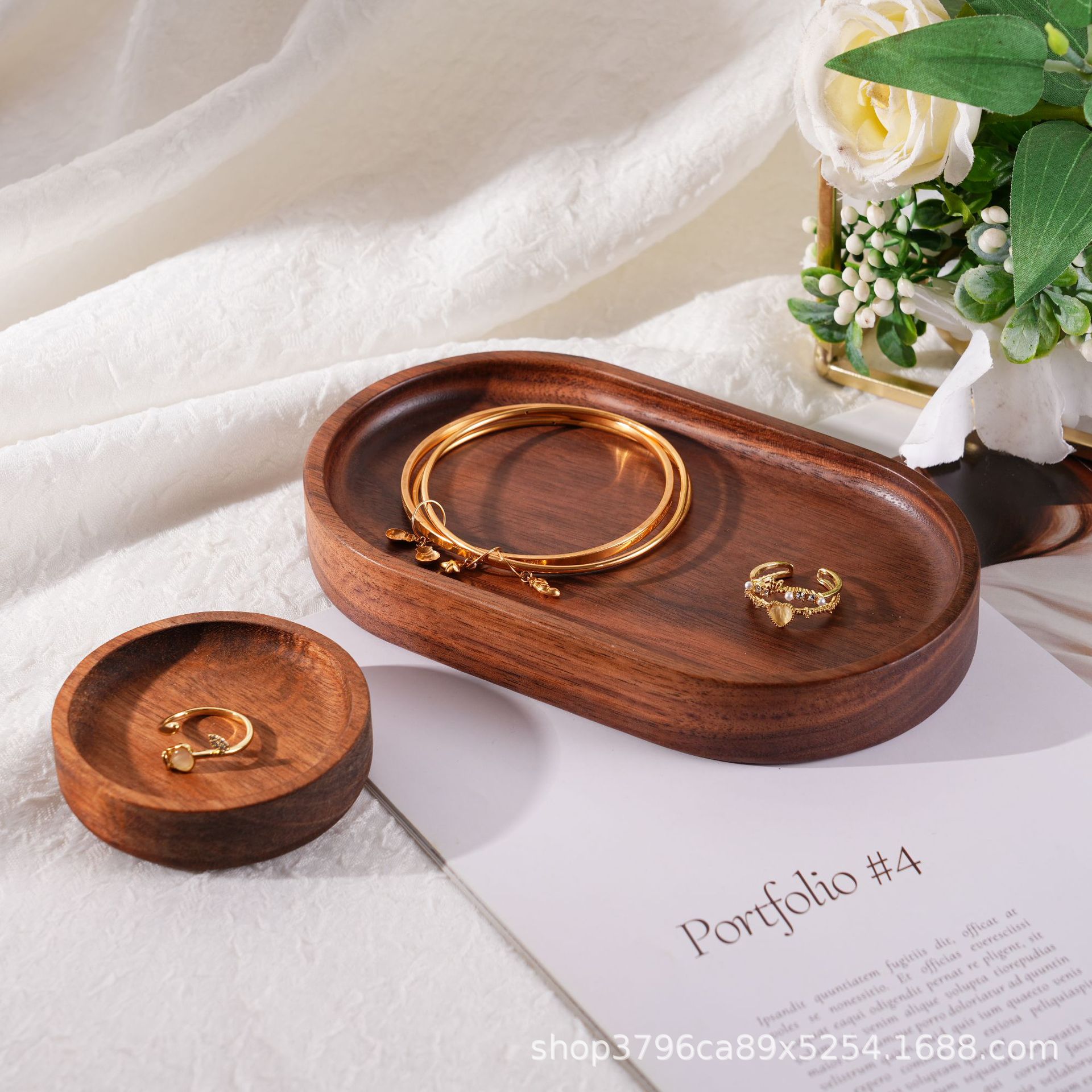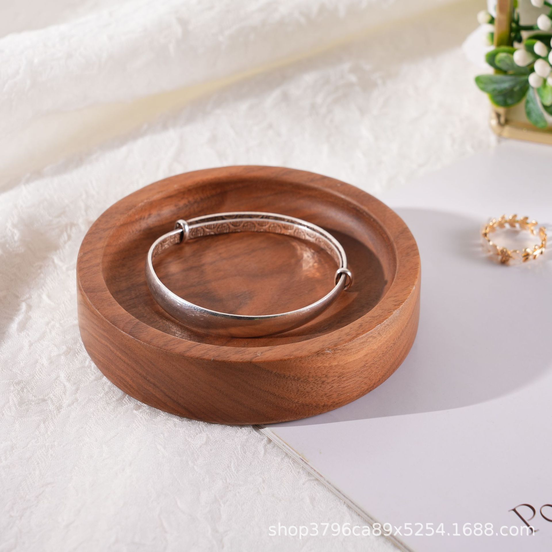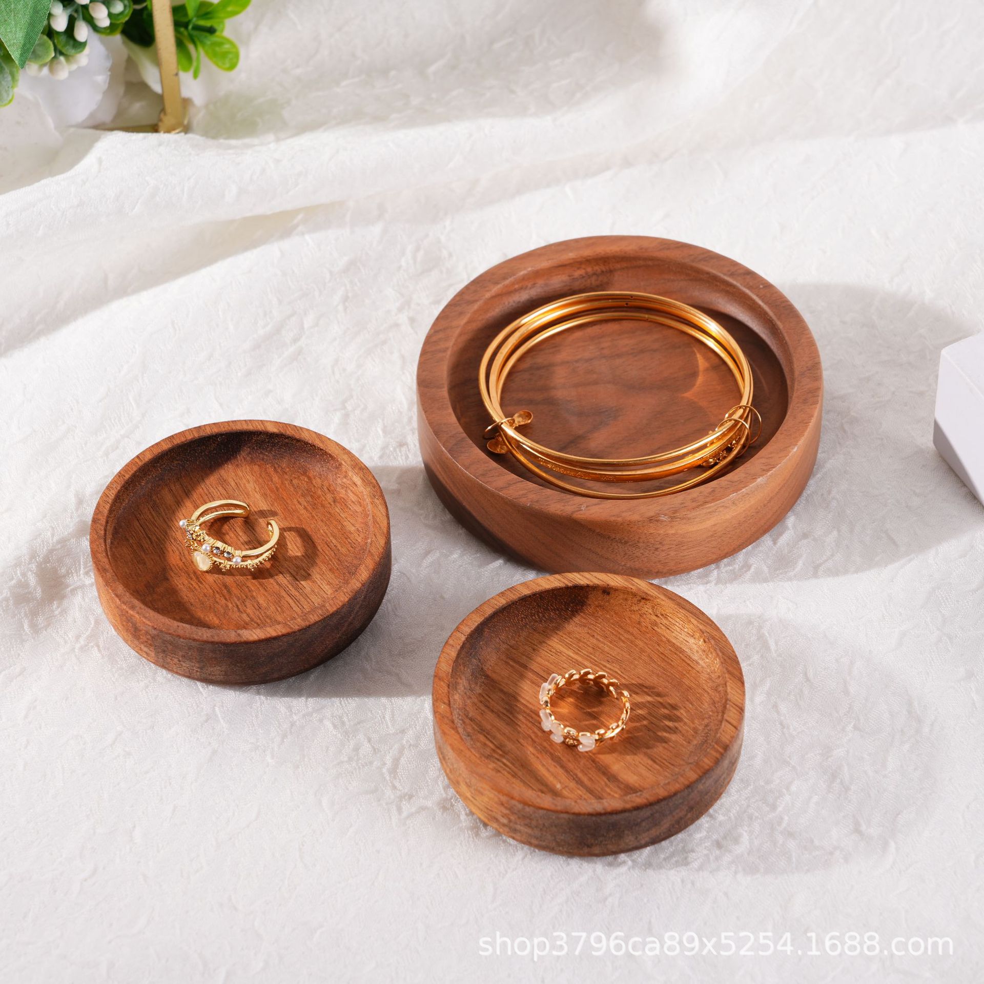 Solid wood round jewelry storage tray walnut necklace earrings ring bracelet display rack vintage jewelry display