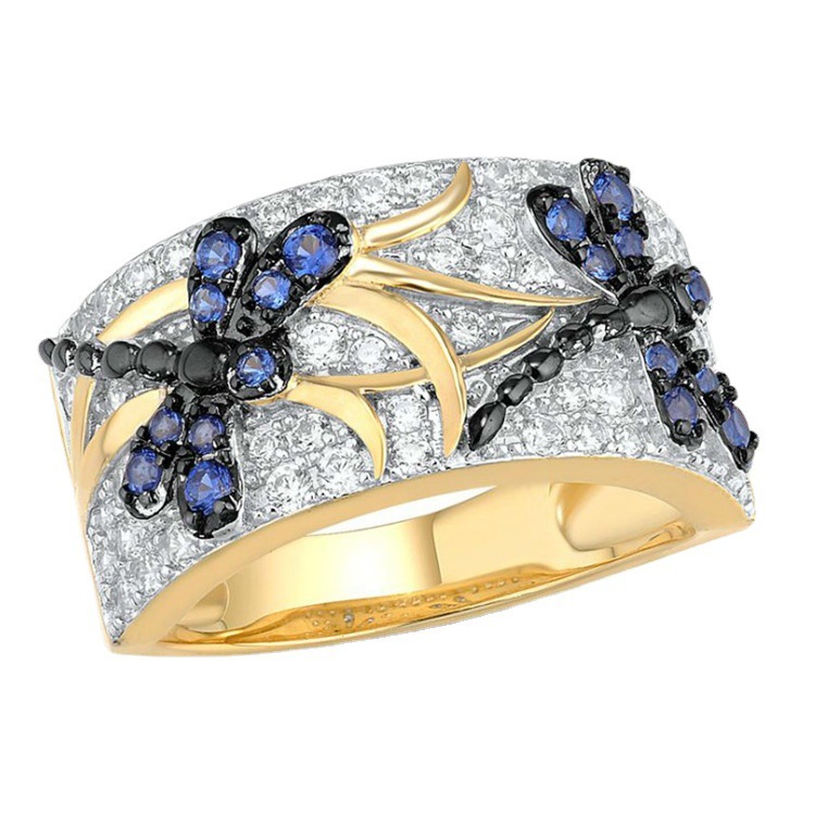 Huajie cross-border wish Chang selling full diamond micro-inlaid Dragonfly Insect Fashion ring popular jewelry factory direct hot sale