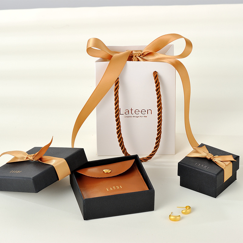 Factory custom suit black gift box packaging microfiber jewelry storage bag ribbon paper bag bow small fresh