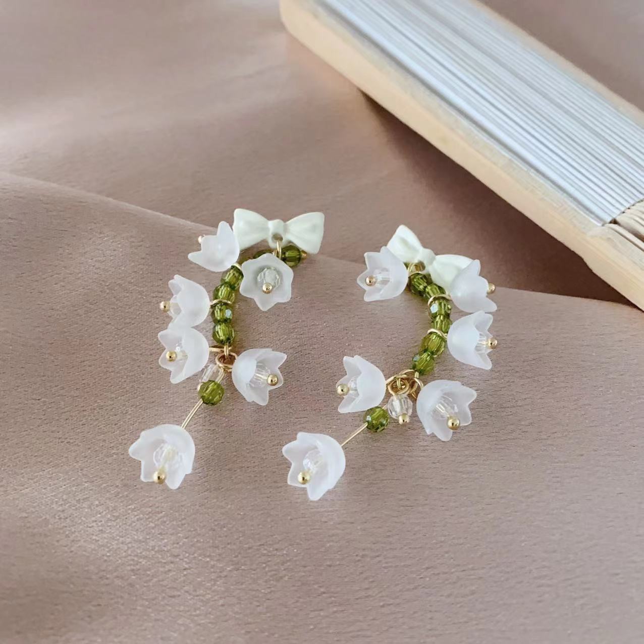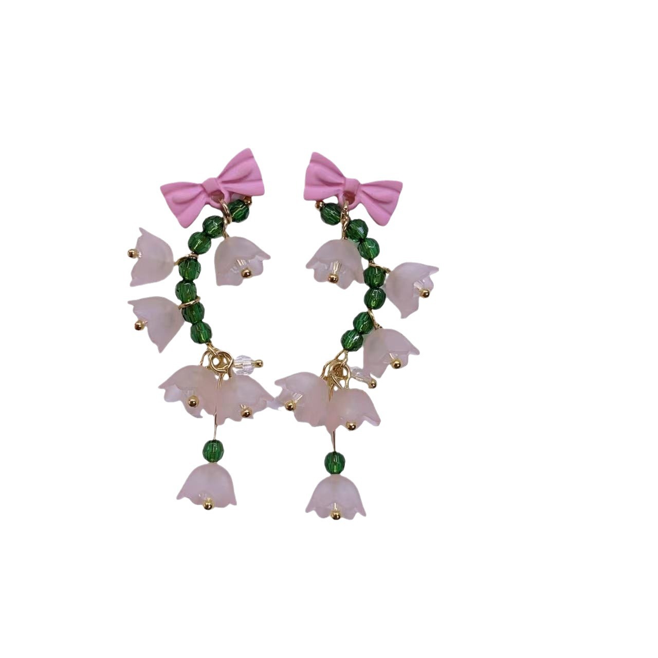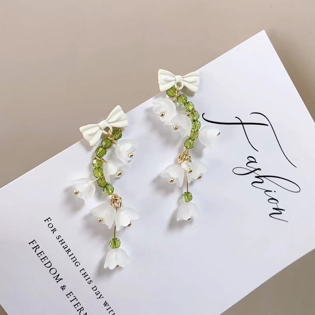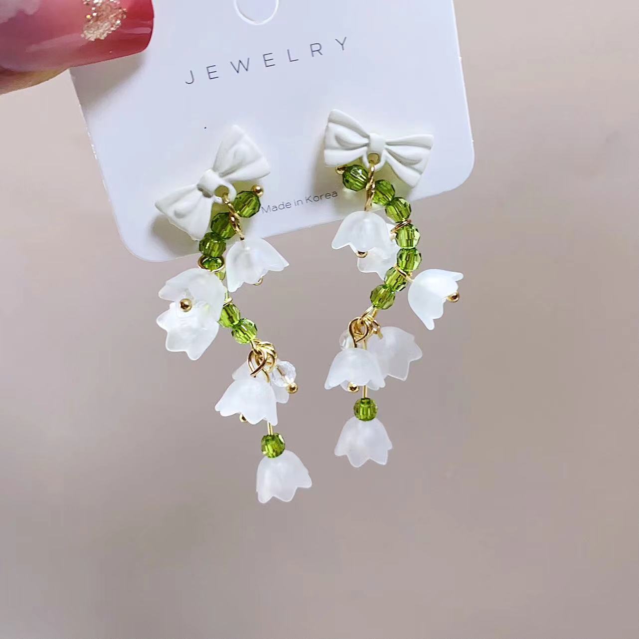 Fresh orchid long tassel earrings Mori girl ins pastoral style bow earrings beaded earrings